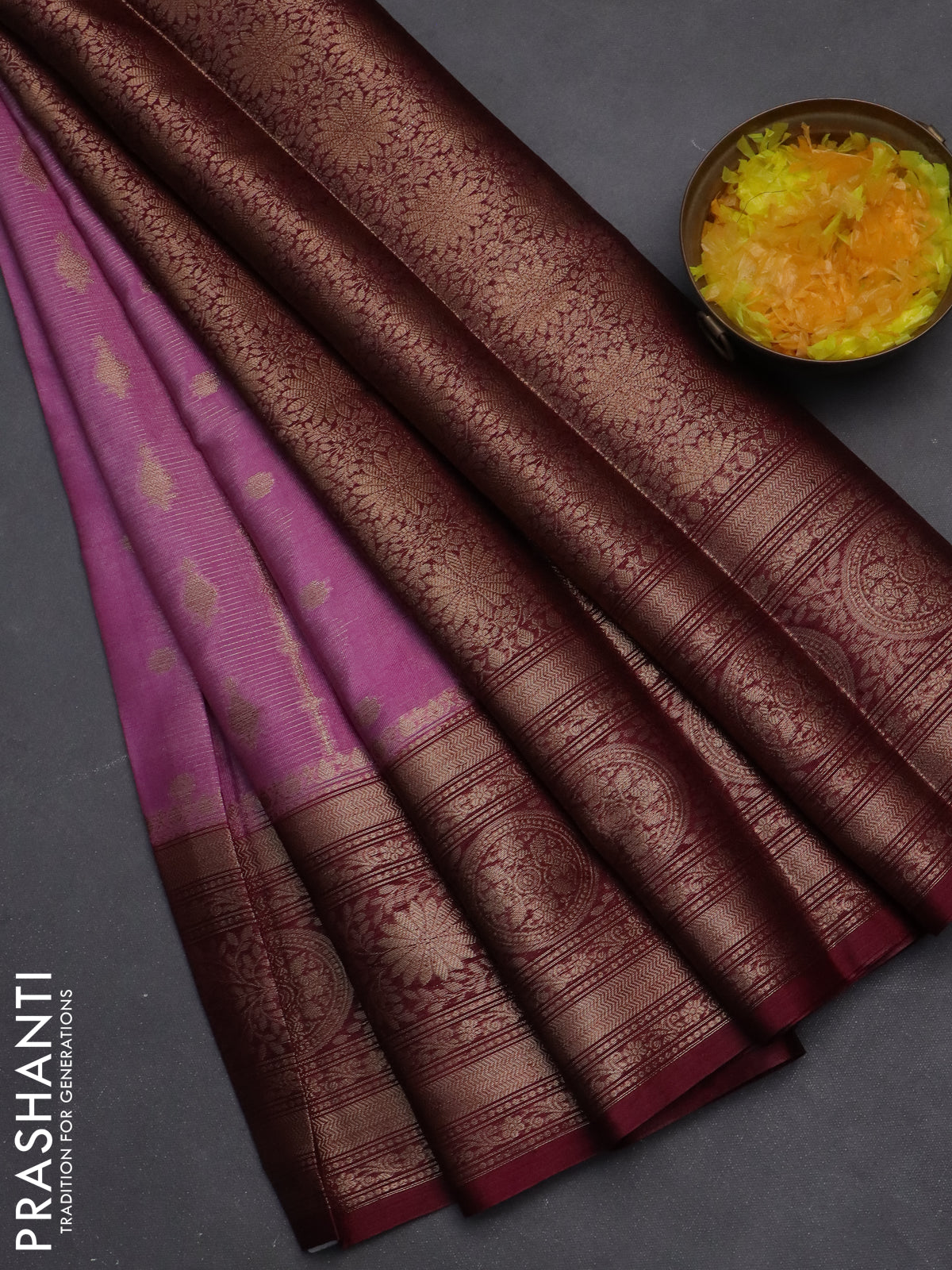 Banarasi warm silk saree lotus pink and wine shade with allover zari weaves & buttas and woven border