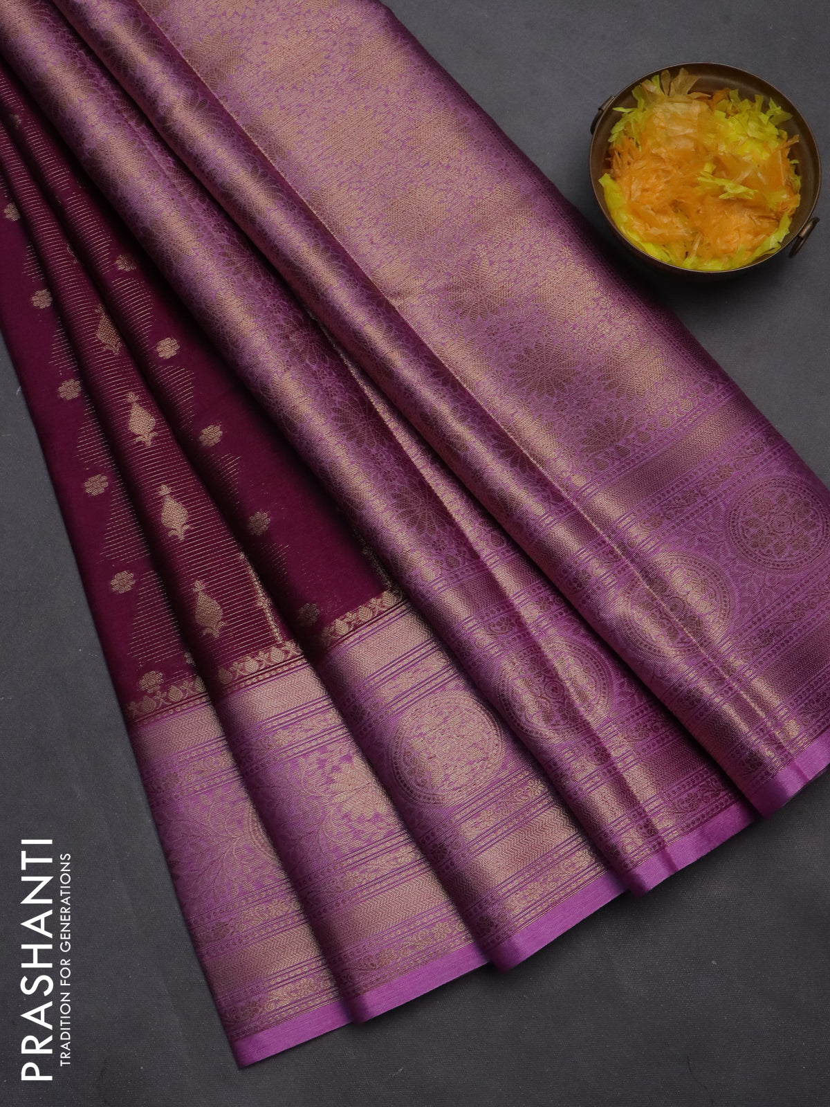 Banarasi warm silk saree purple and lavender with allover zari weaves & buttas and woven border