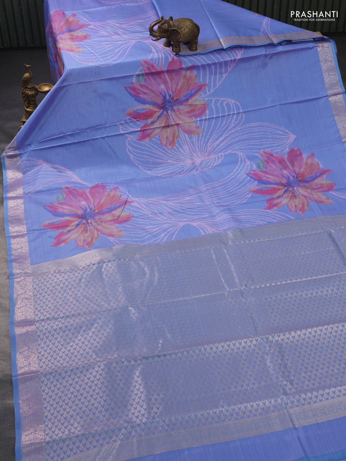 Bangalori semi silk saree light blue with allover ikat weaves and zari woven border