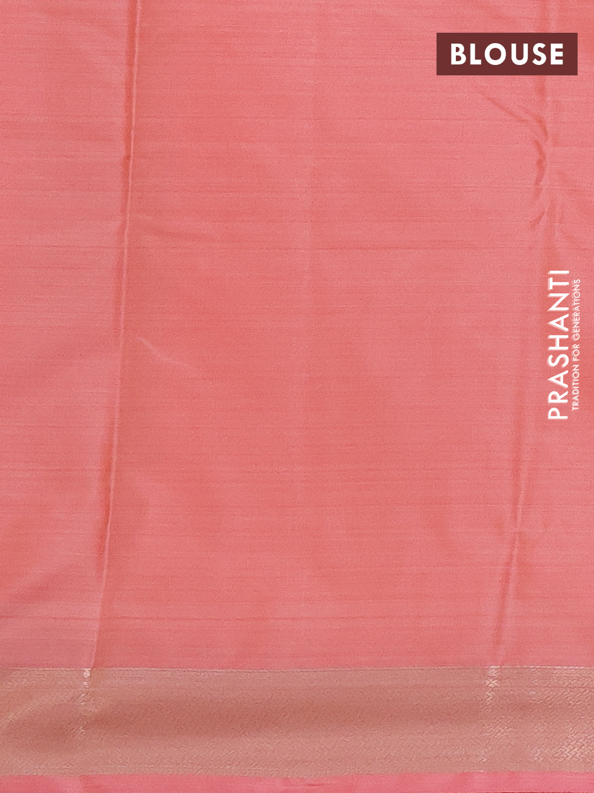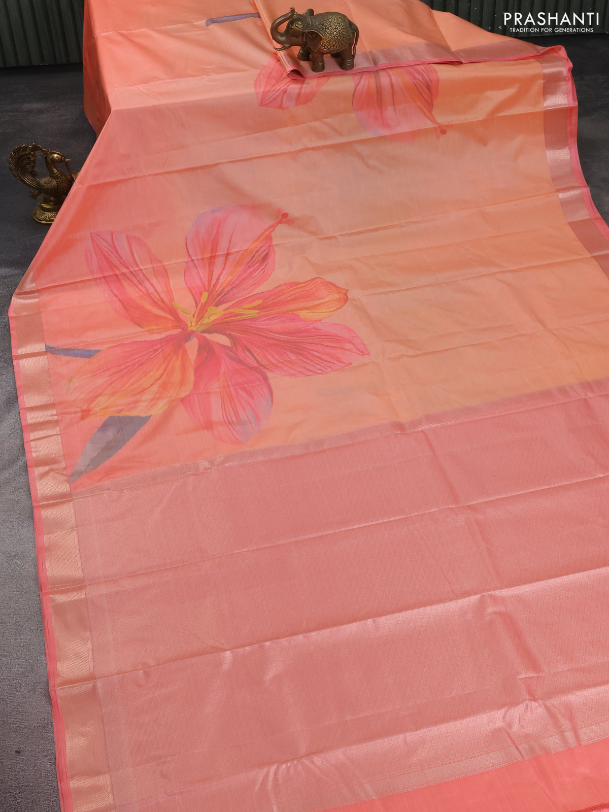 Bangalori semi silk saree peach orange with allover ikat weaves and zari woven border