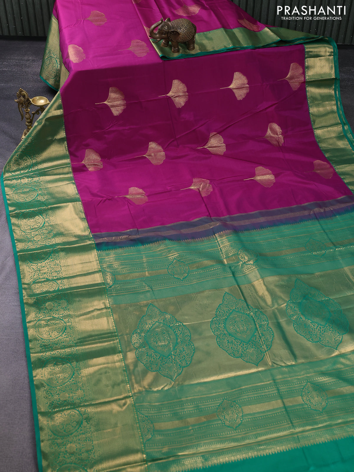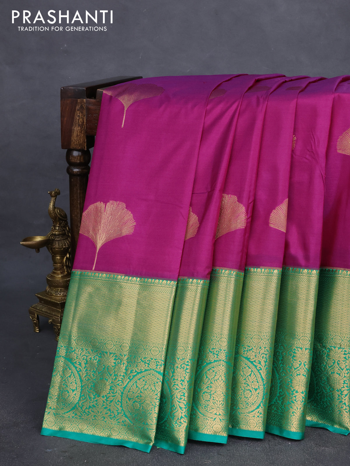 Bangalori silk saree dark magenta pink and green with zari woven buttas and long zari woven border
