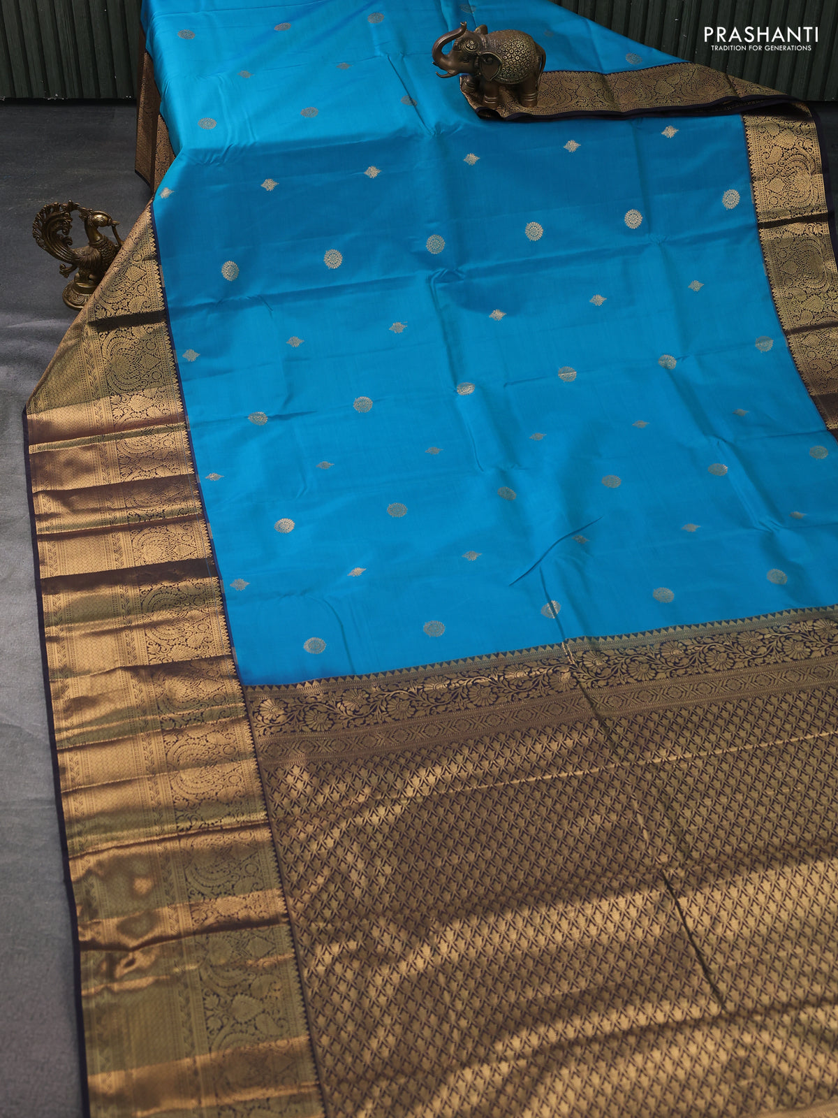 Bangalori silk saree dual shade of cs blue and deep jamun with zari woven buttas and long zari woven border and Butta style