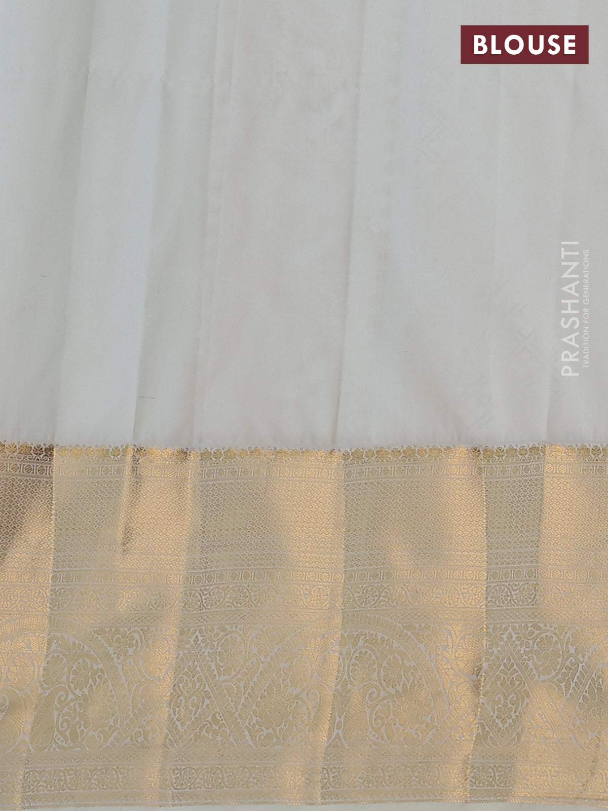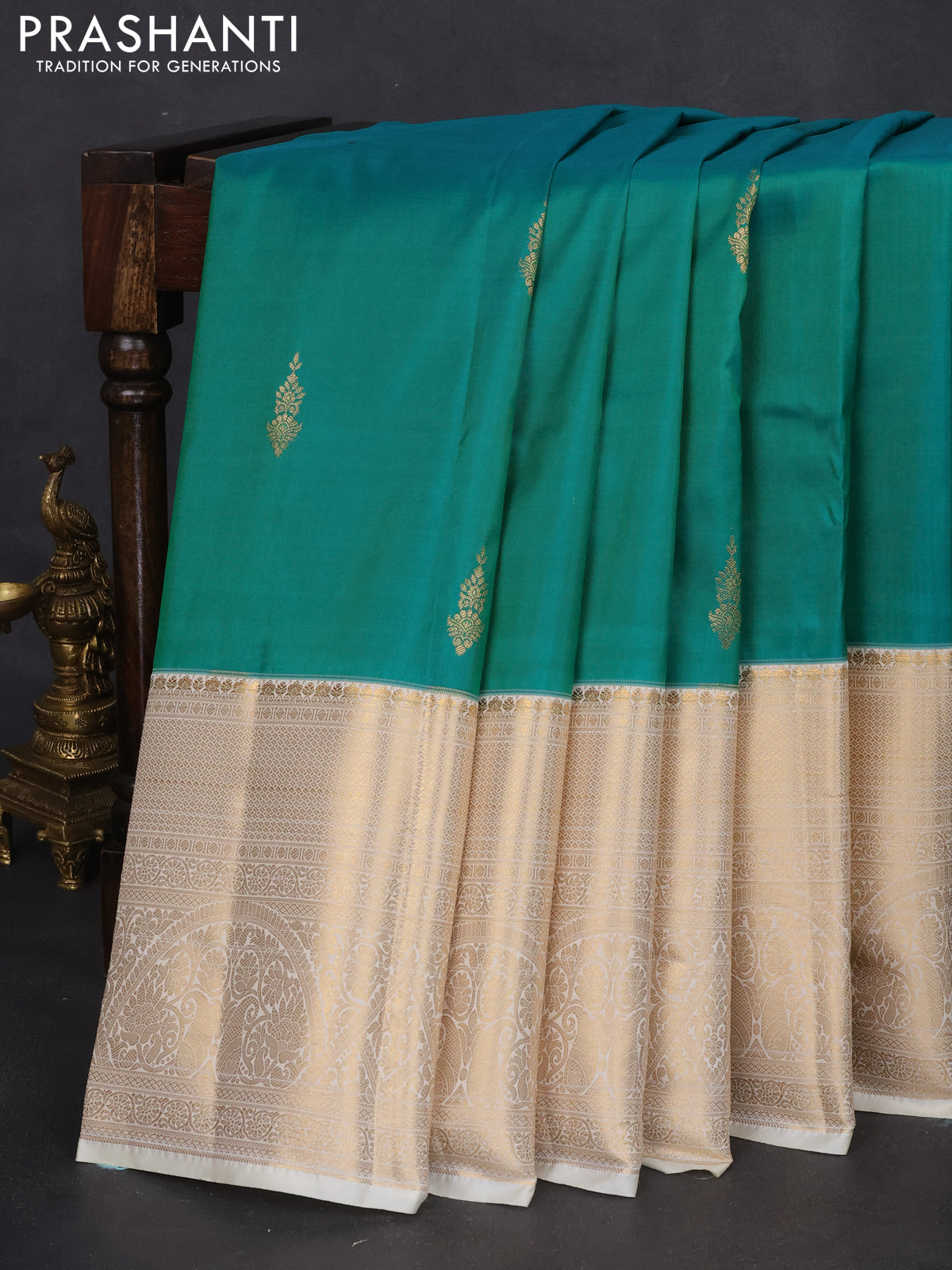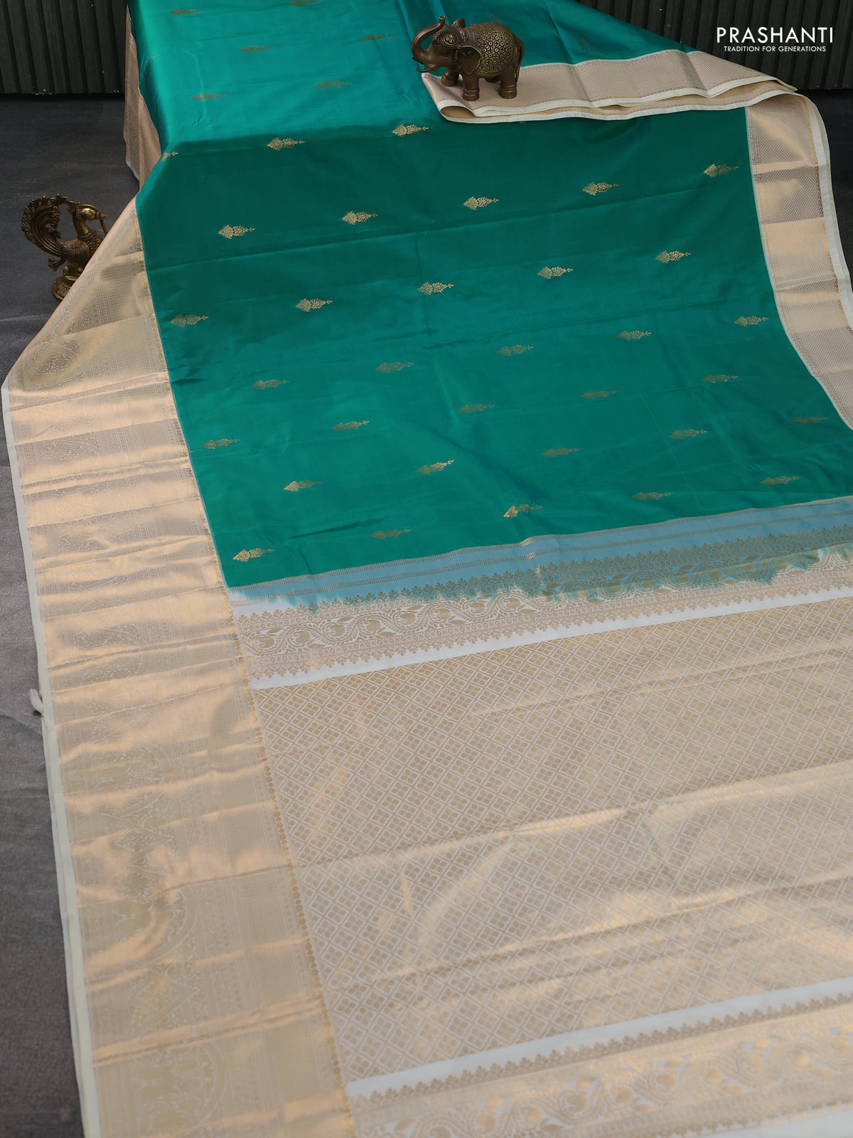Bangalori silk saree green and cream with zari woven buttas and long zari woven border and Butta style