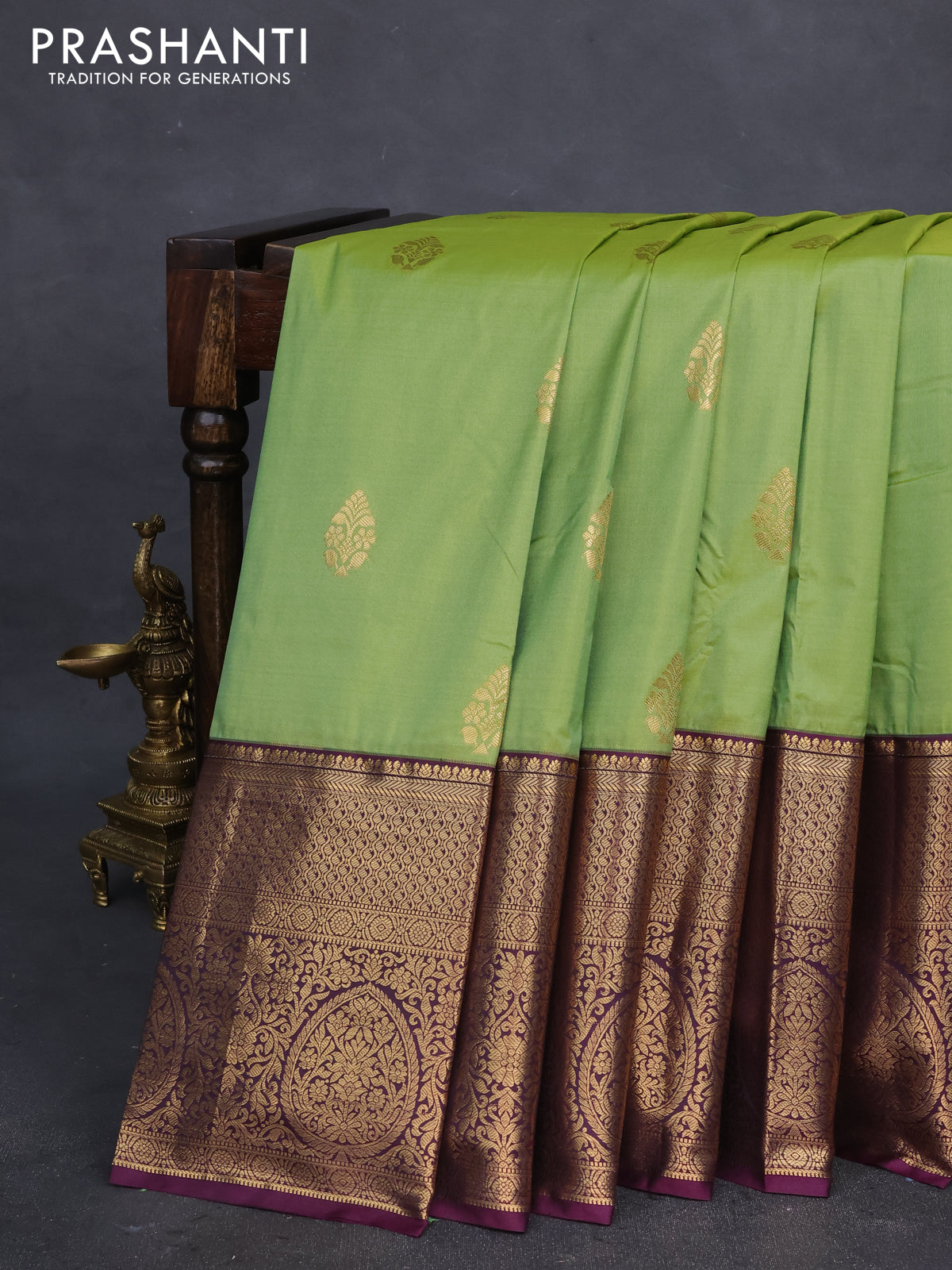 Bangalori silk saree green and wine shade with zari woven buttas and long zari woven border