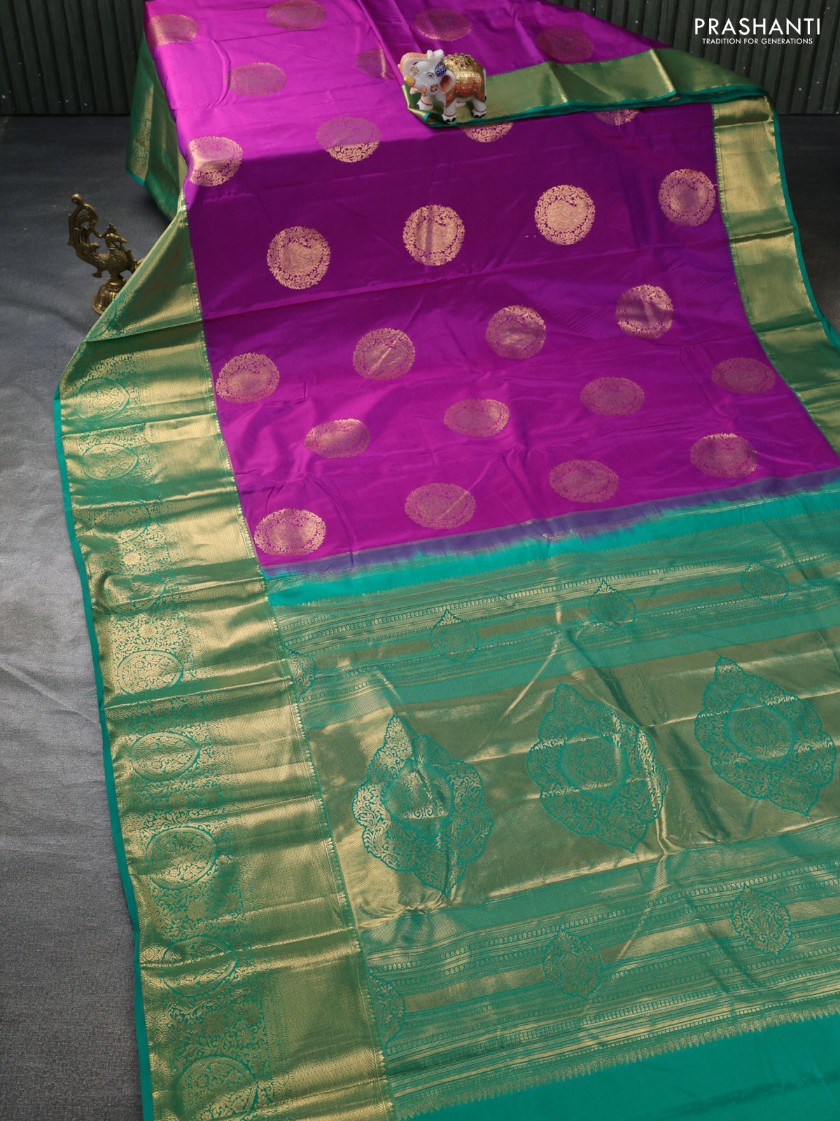 Bangalori silk saree purple and green with zari woven buttas and long zari woven border