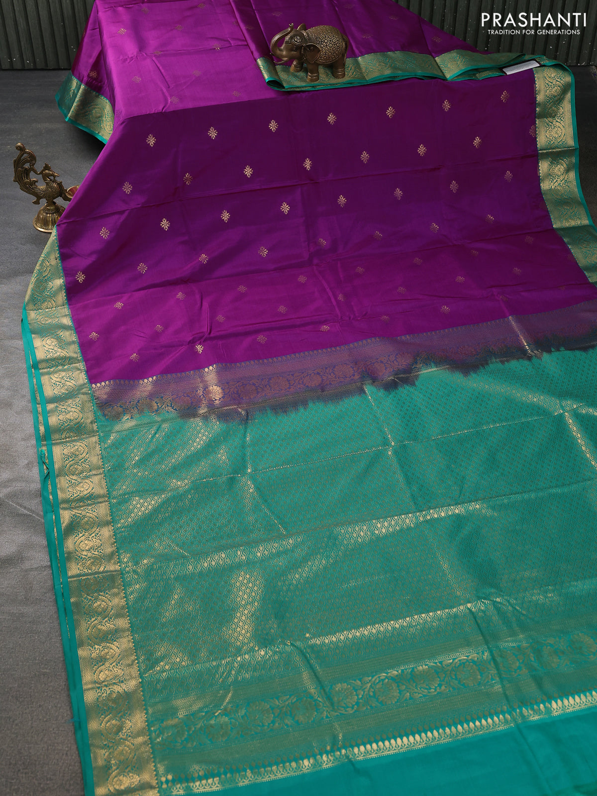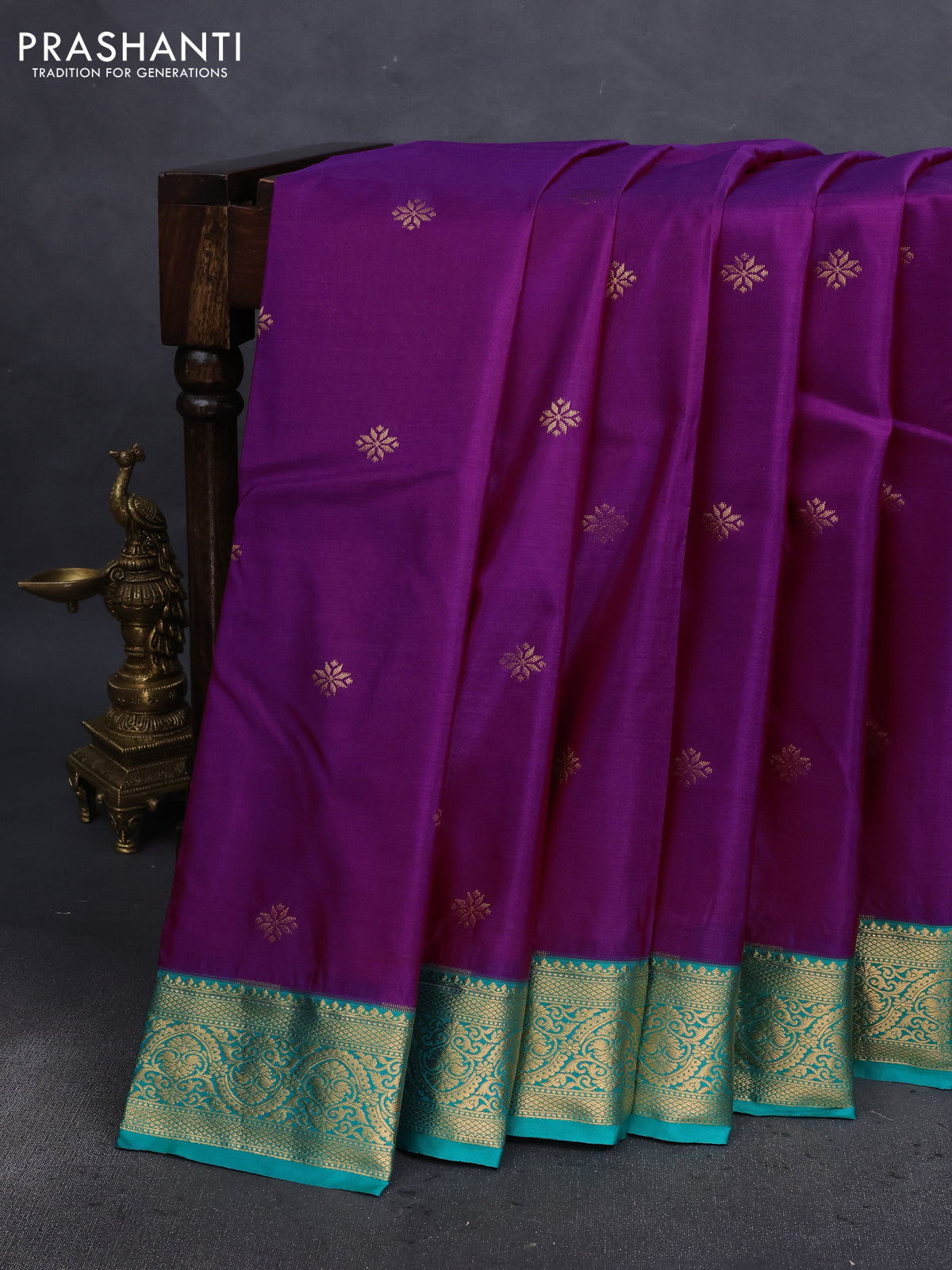 Bangalori silk saree purple and green with zari woven buttas and zari woven border