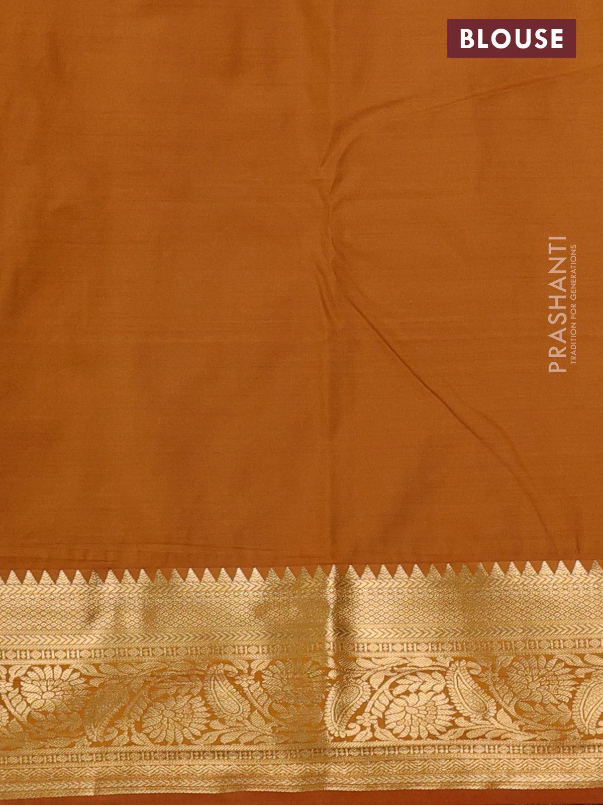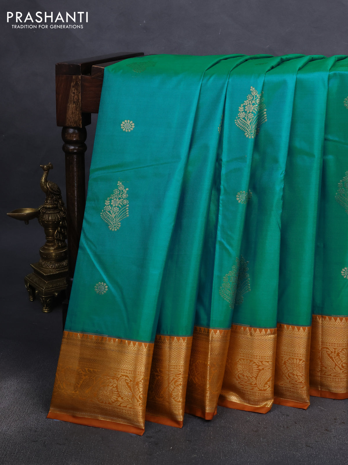 Bangalori silk saree teal blue and dark mustard with zari woven buttas and zari woven border