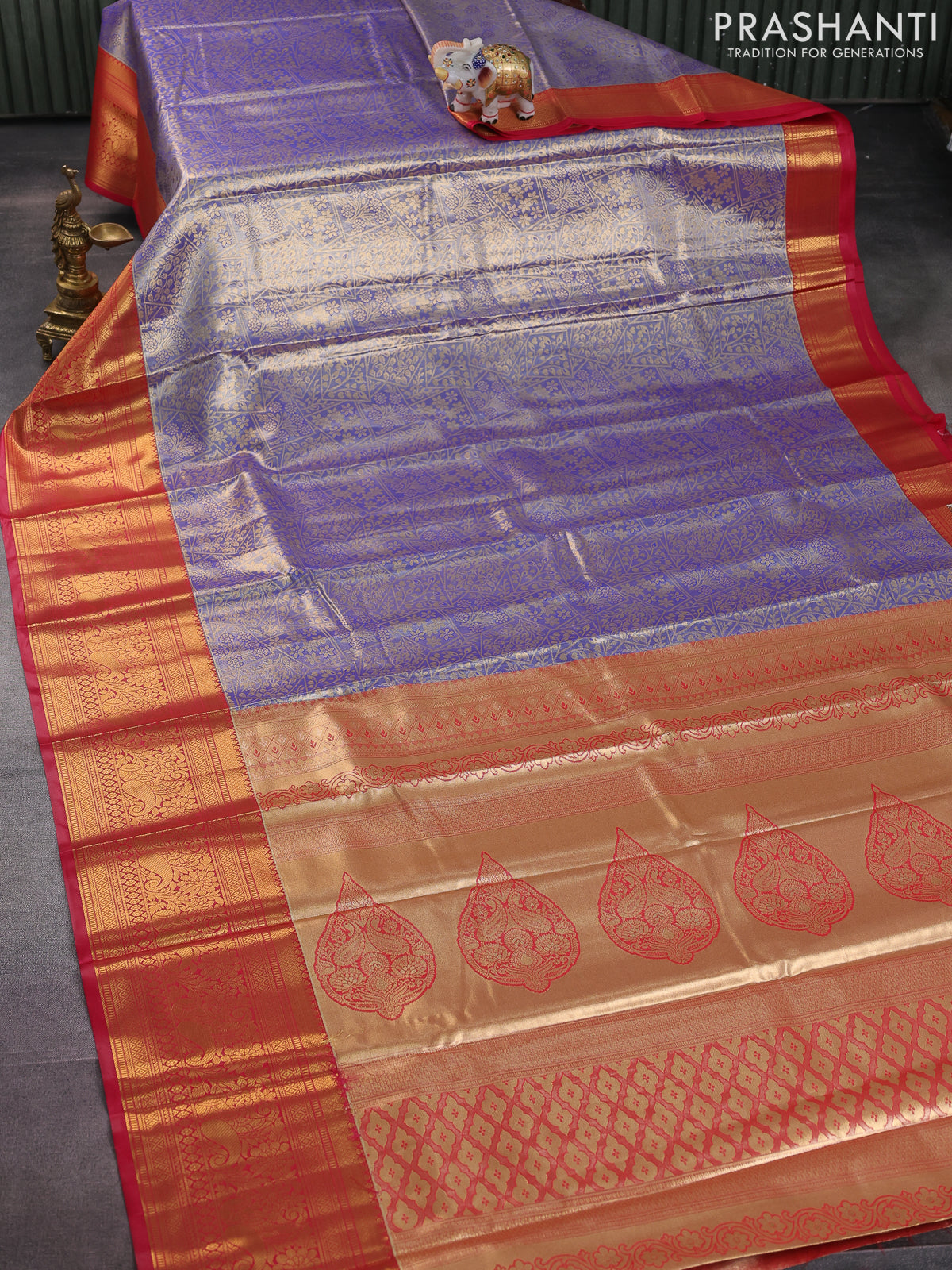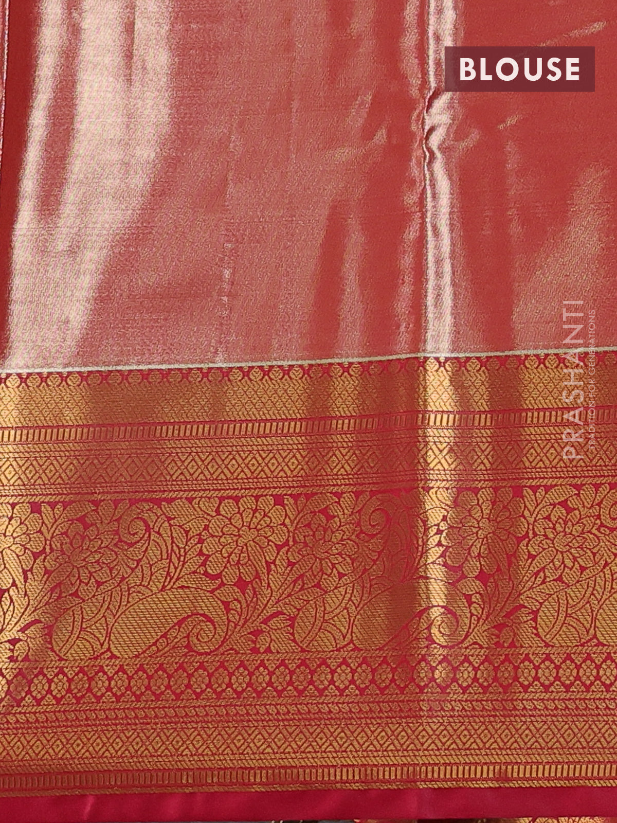 Bangalori tissue silk saree blue and reddish pink with allover zari woven brocade weaves and long zari woven border