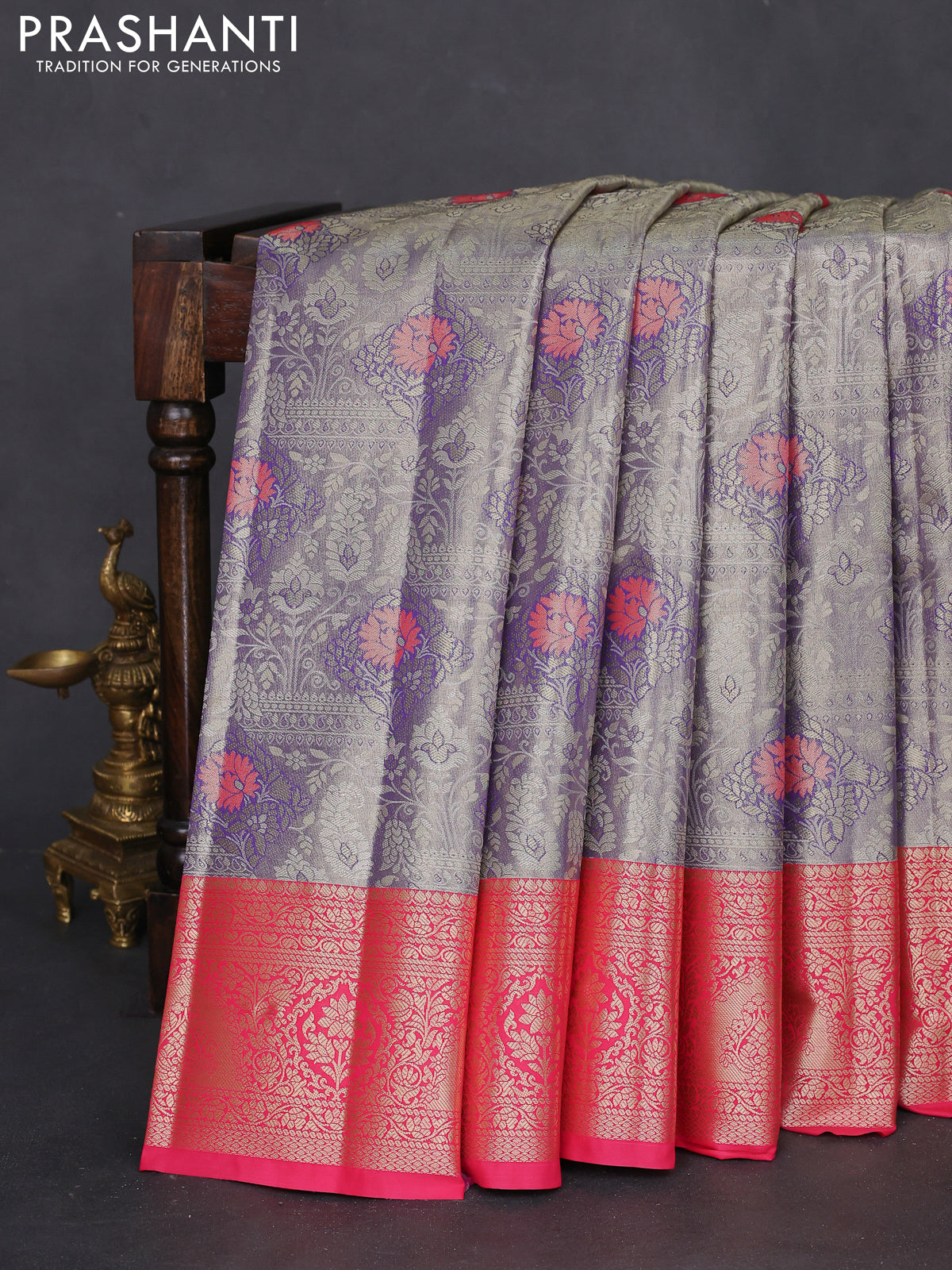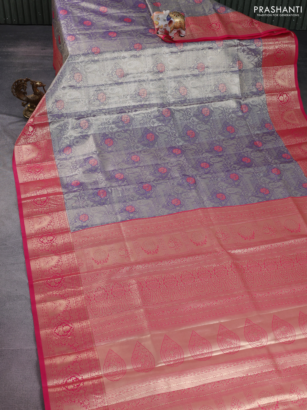 Bangalori tissue silk saree dual shade of blue and pink with allover zari woven mina weaves and zari woven border