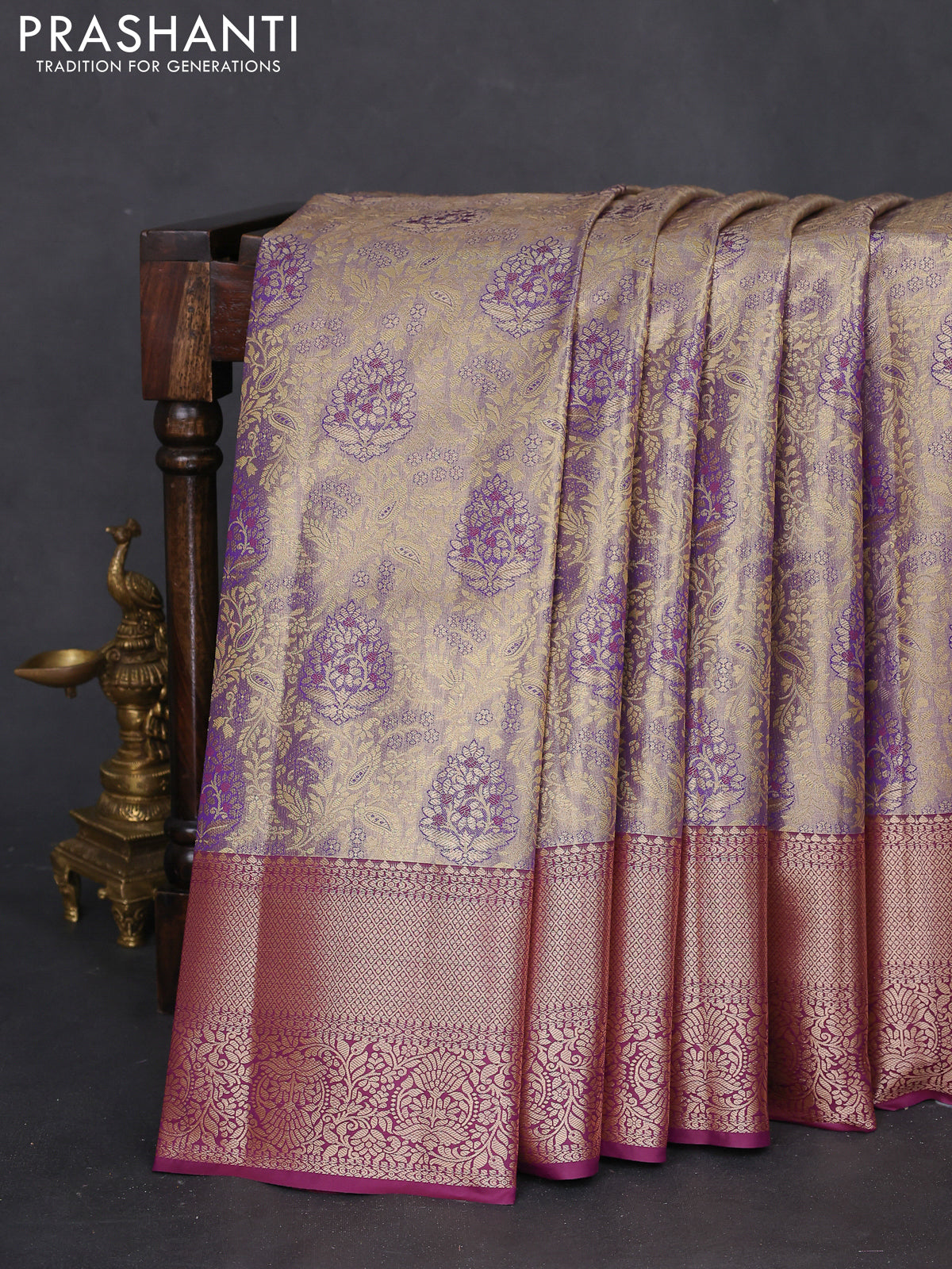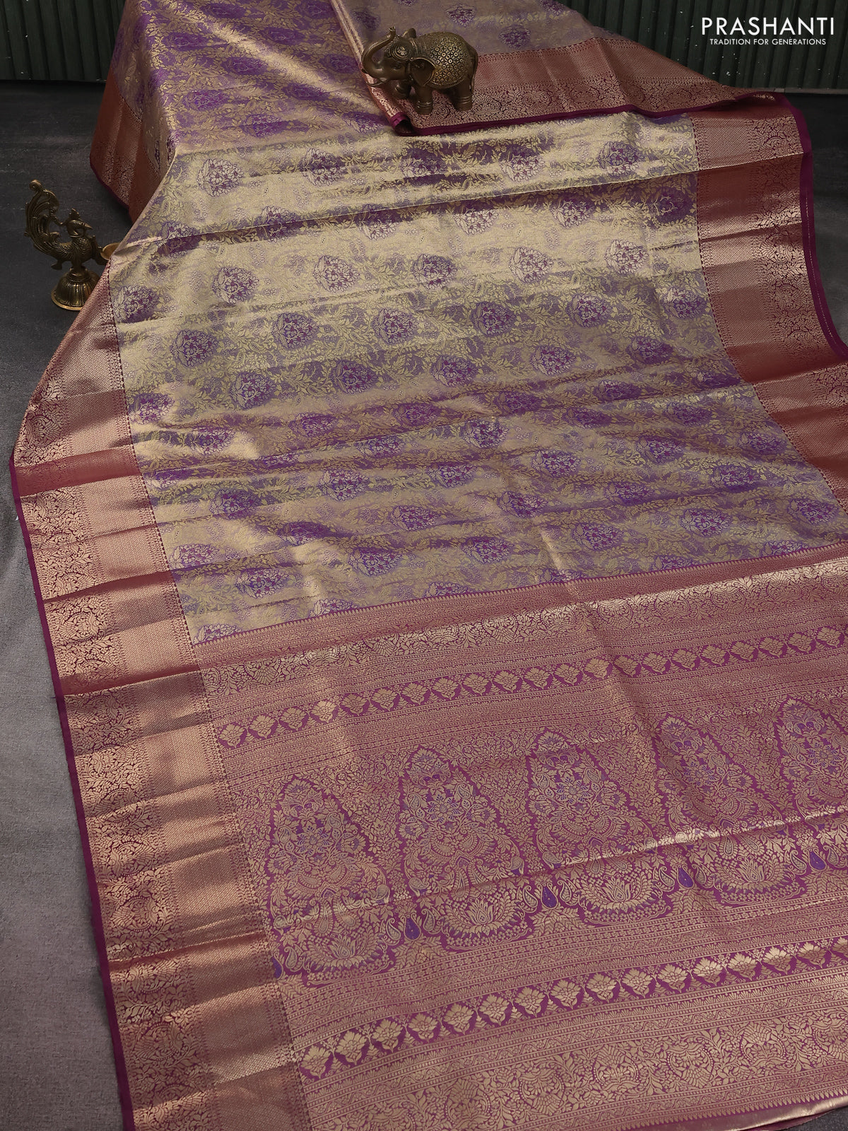Bangalori tissue silk saree dual shade of violet and wine shade with zari woven brocade weaves and zari woven border