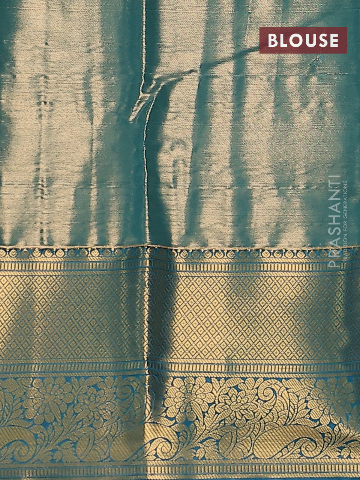 Bangalori tissue silk saree gold and peacock blue shade with allover zari woven brocade weaves and long zari woven border
