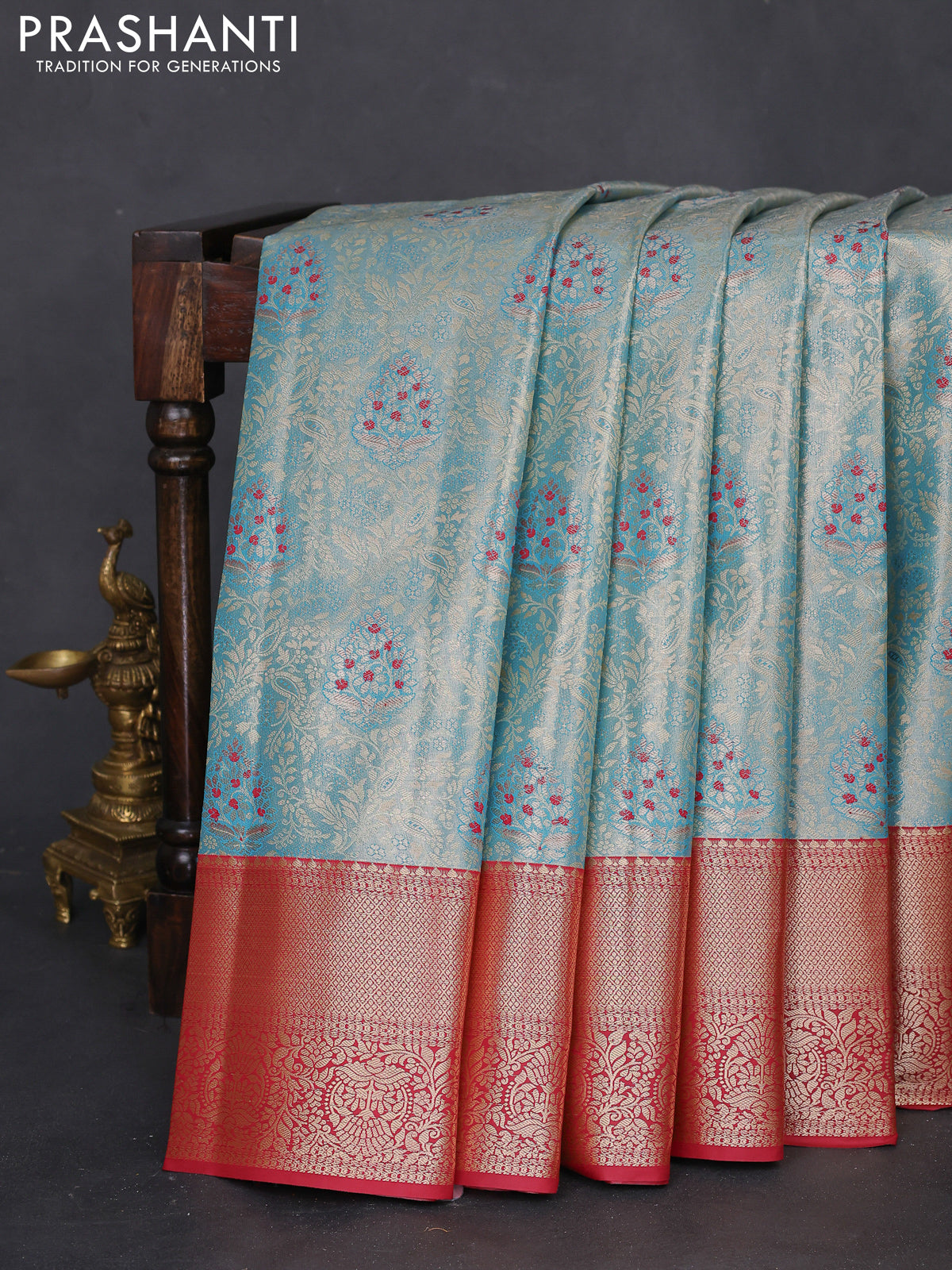 Bangalori tissue silk saree light blue and maroon with zari woven brocade weaves and zari woven border