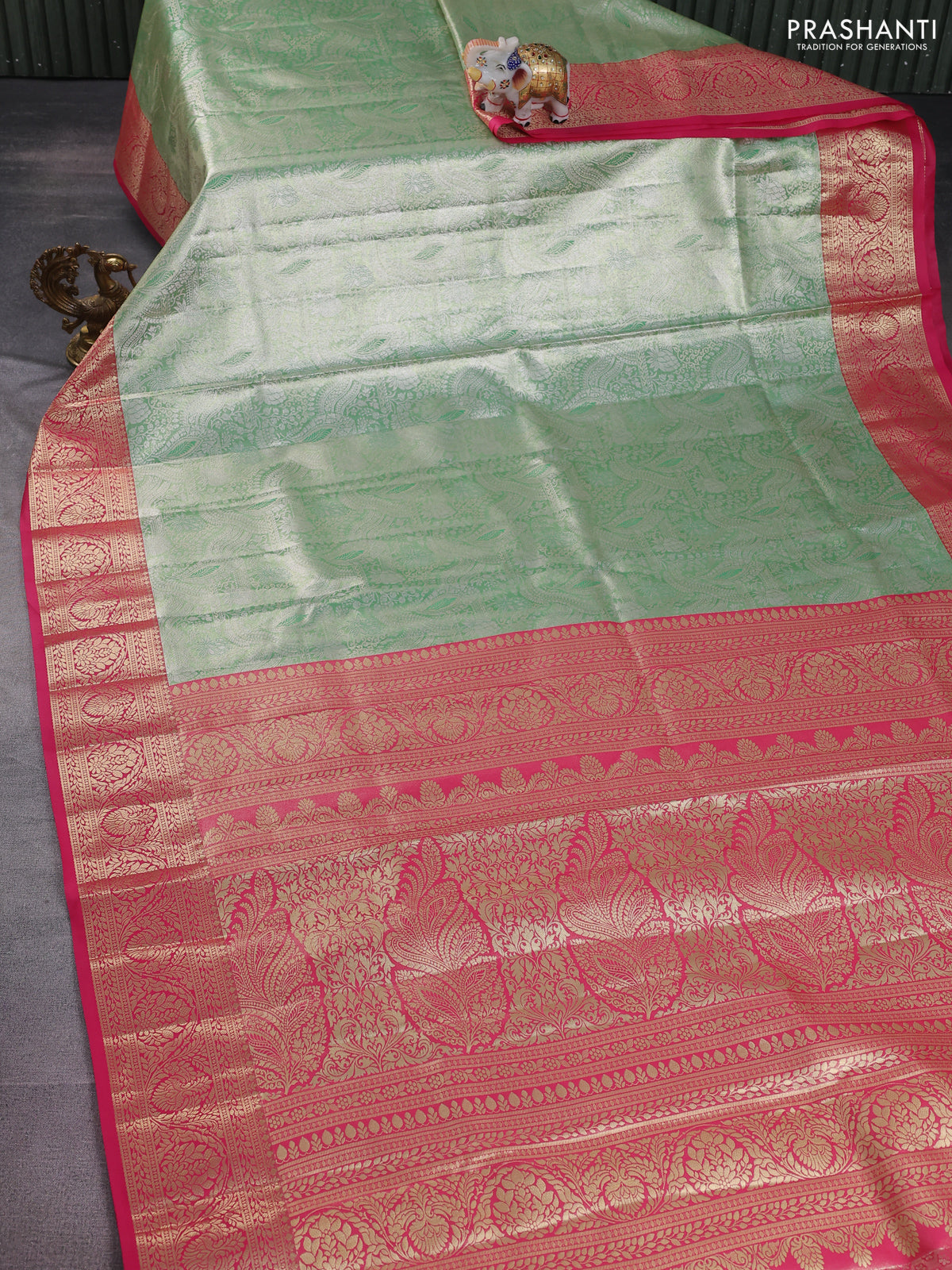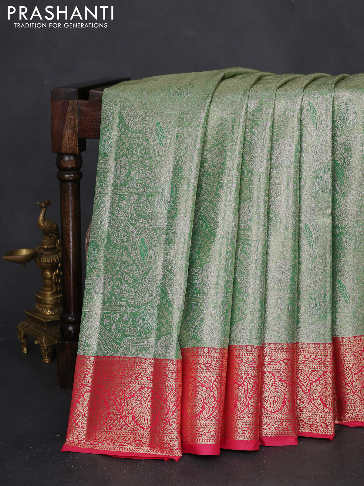 Bangalori tissue silk saree pastel green and pink with silver zari woven brocade weaves and zari woven border