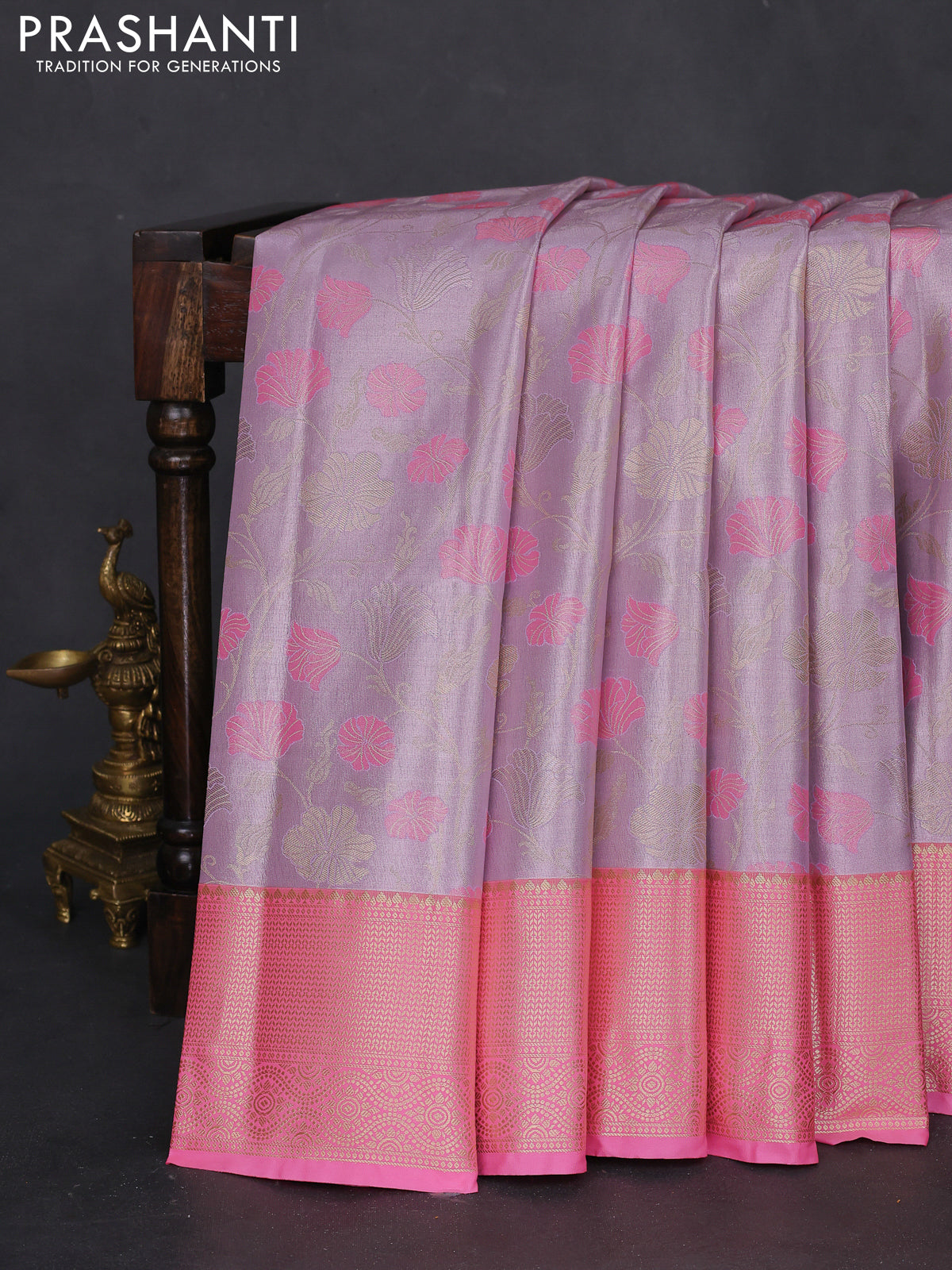 Bangalori tissue silk saree pastel lavender and light pink with zari woven floral design brocade pattern and zari woven border