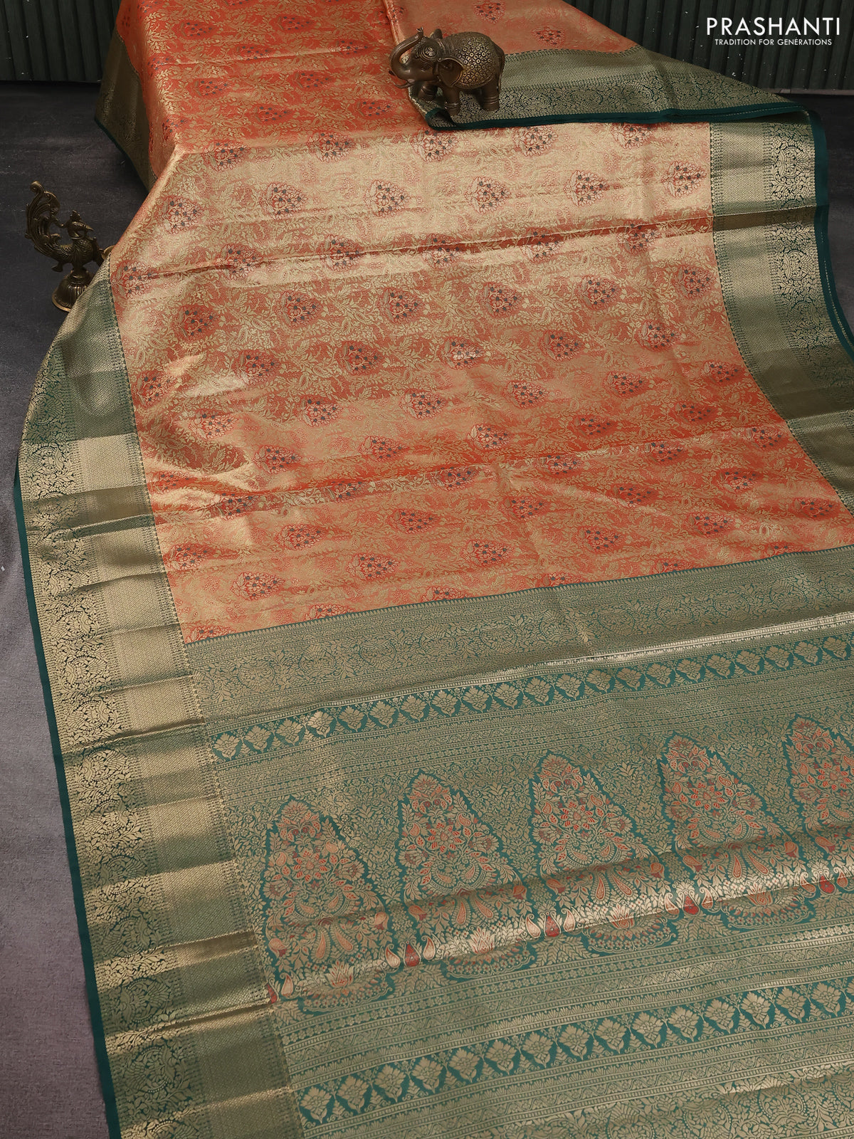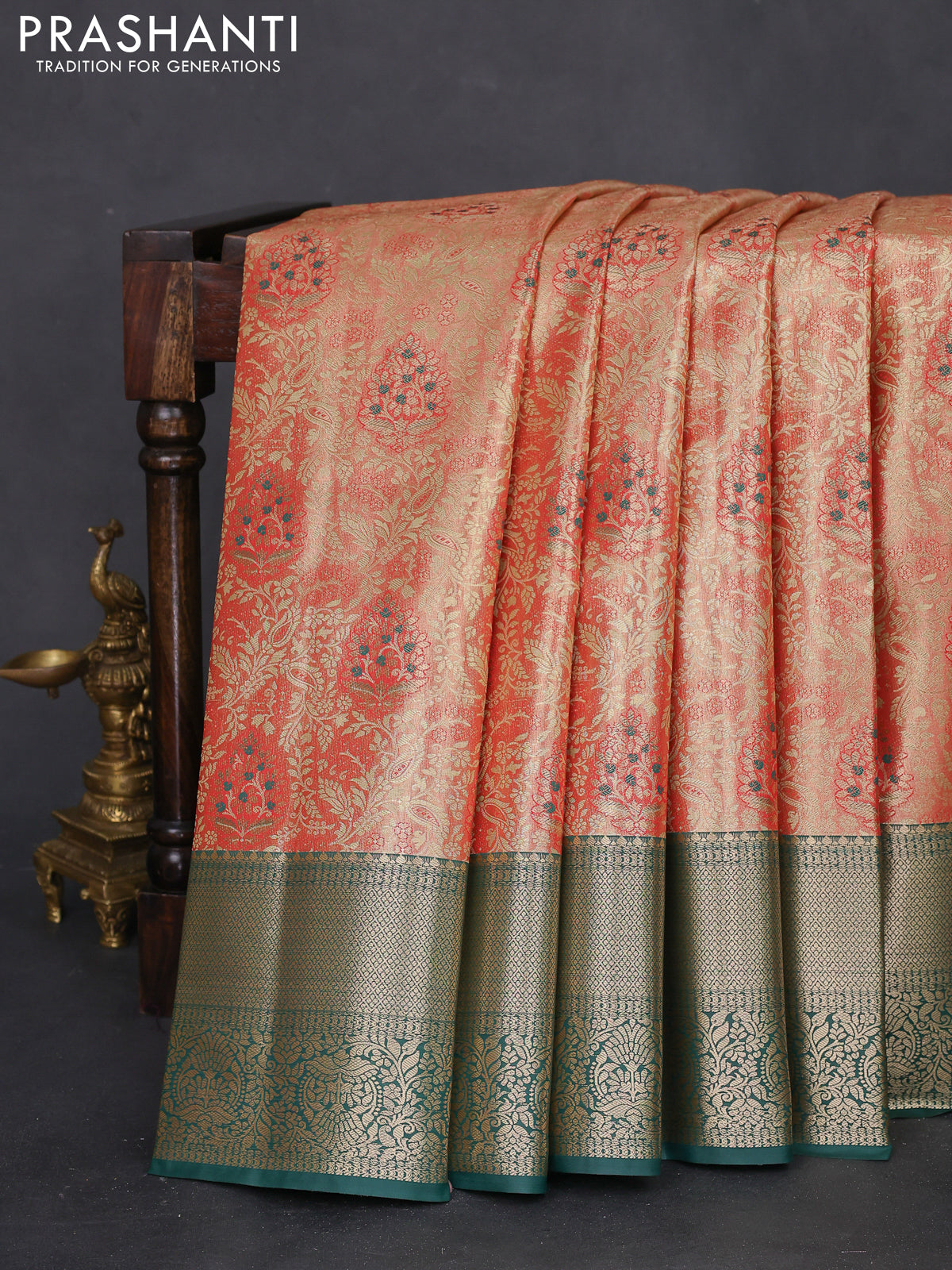 Bangalori tissue silk saree red shade and green with zari woven brocade weaves and zari woven border