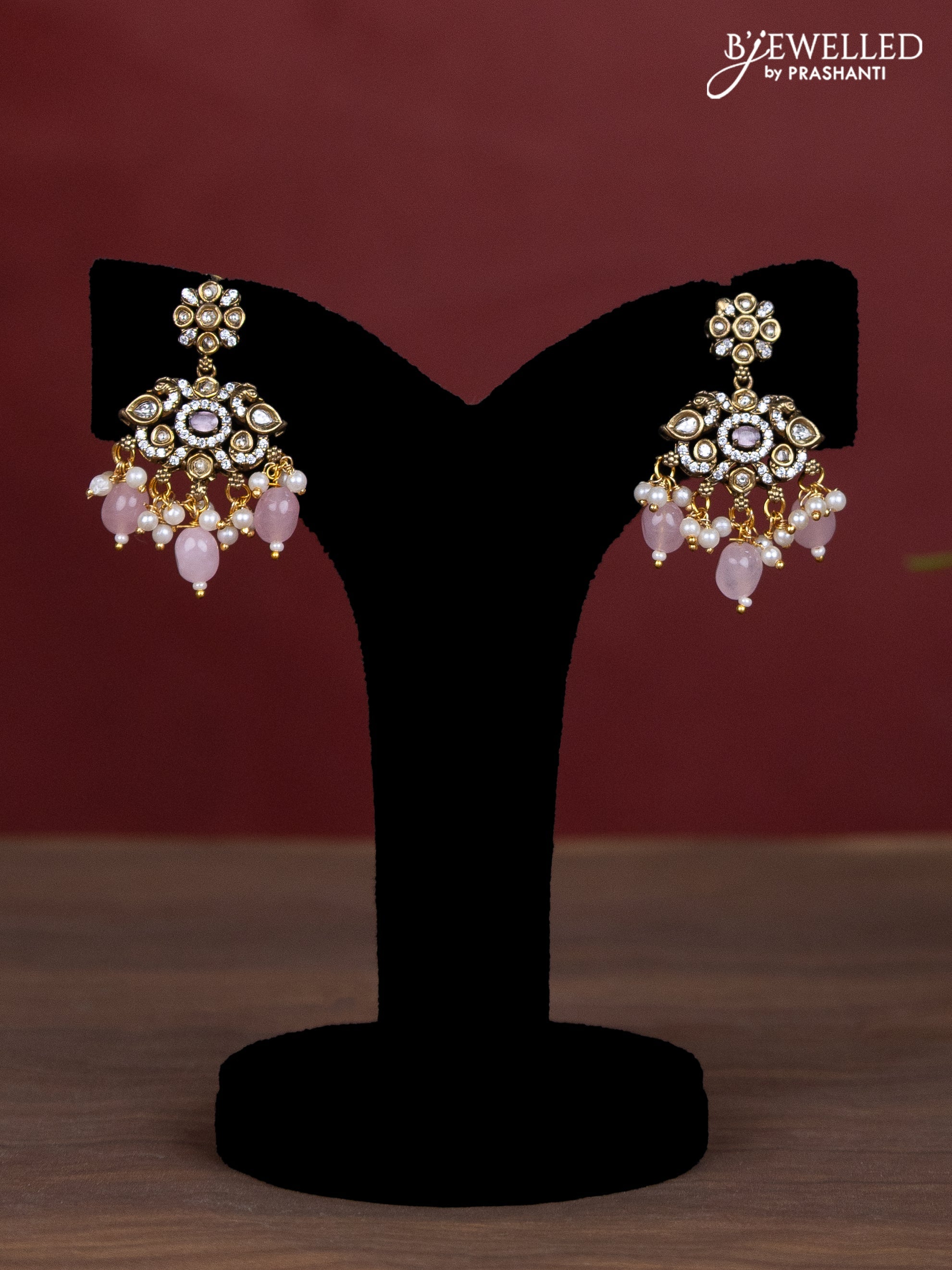 Beaded baby pink necklace peacock design with cz stones and pearl & beads hanging in victorian finish