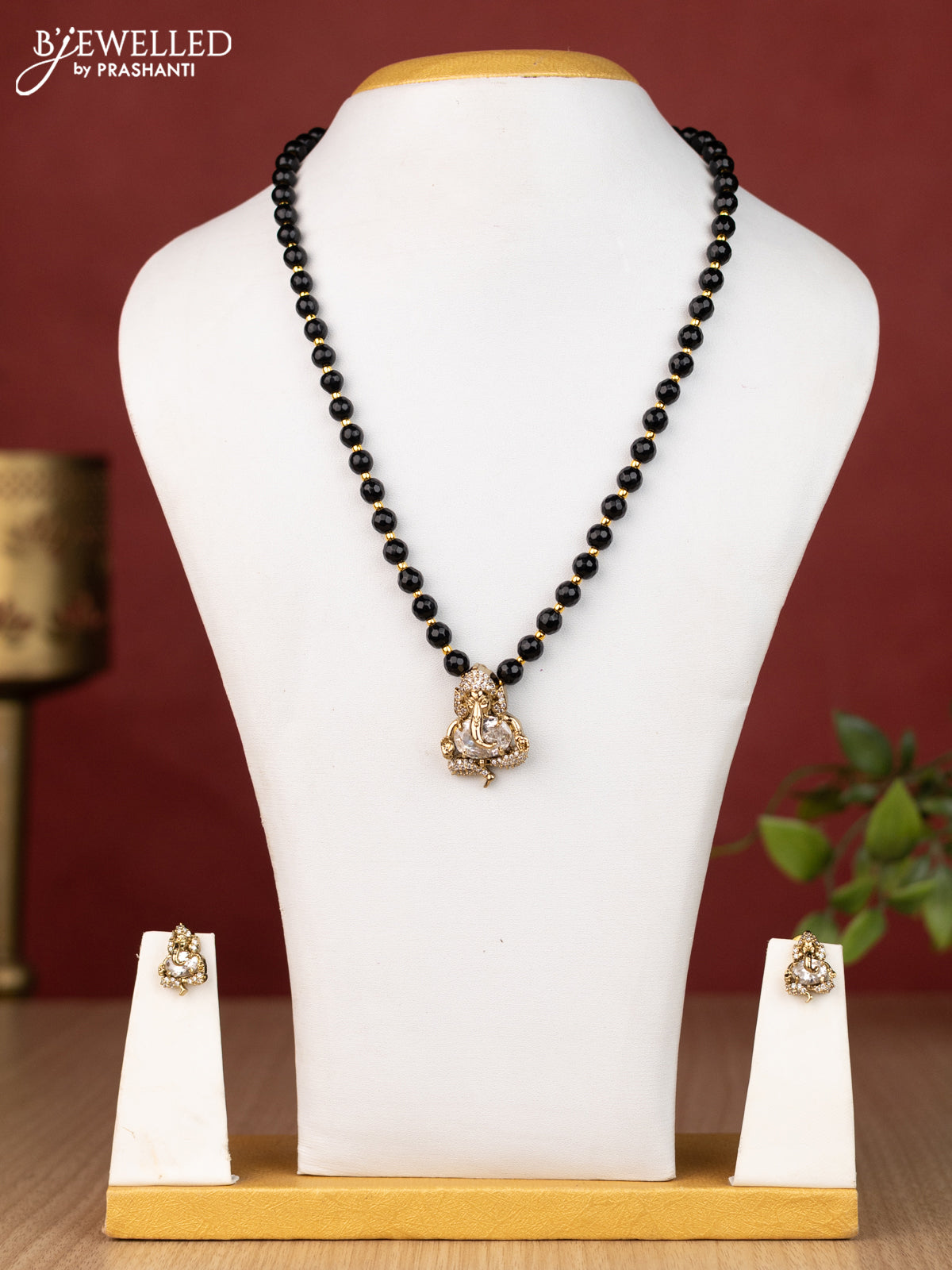 Beaded black necklace with ganesha pendant and cz stones in victorian finish