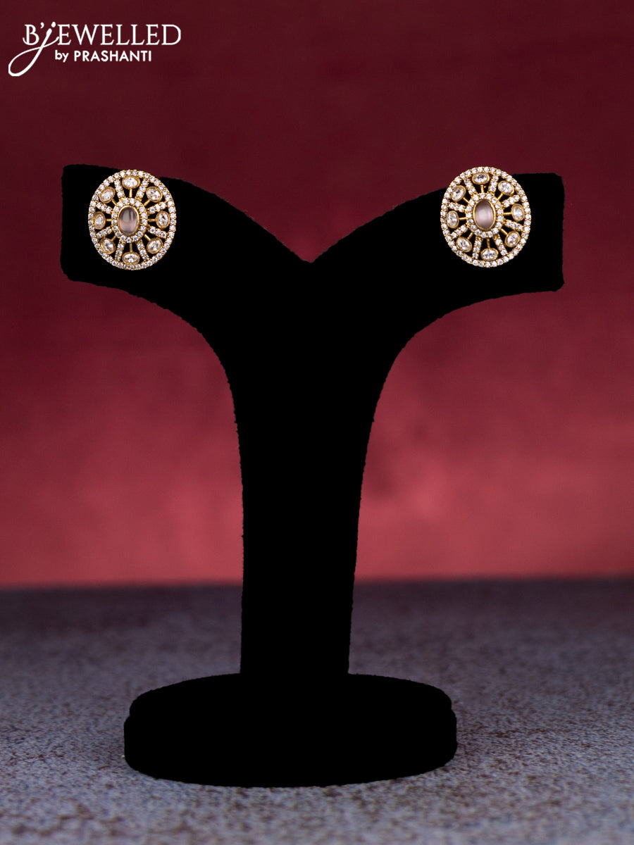Beaded double layer baby pink necklace with cz stones and beads hangings in victorian finish