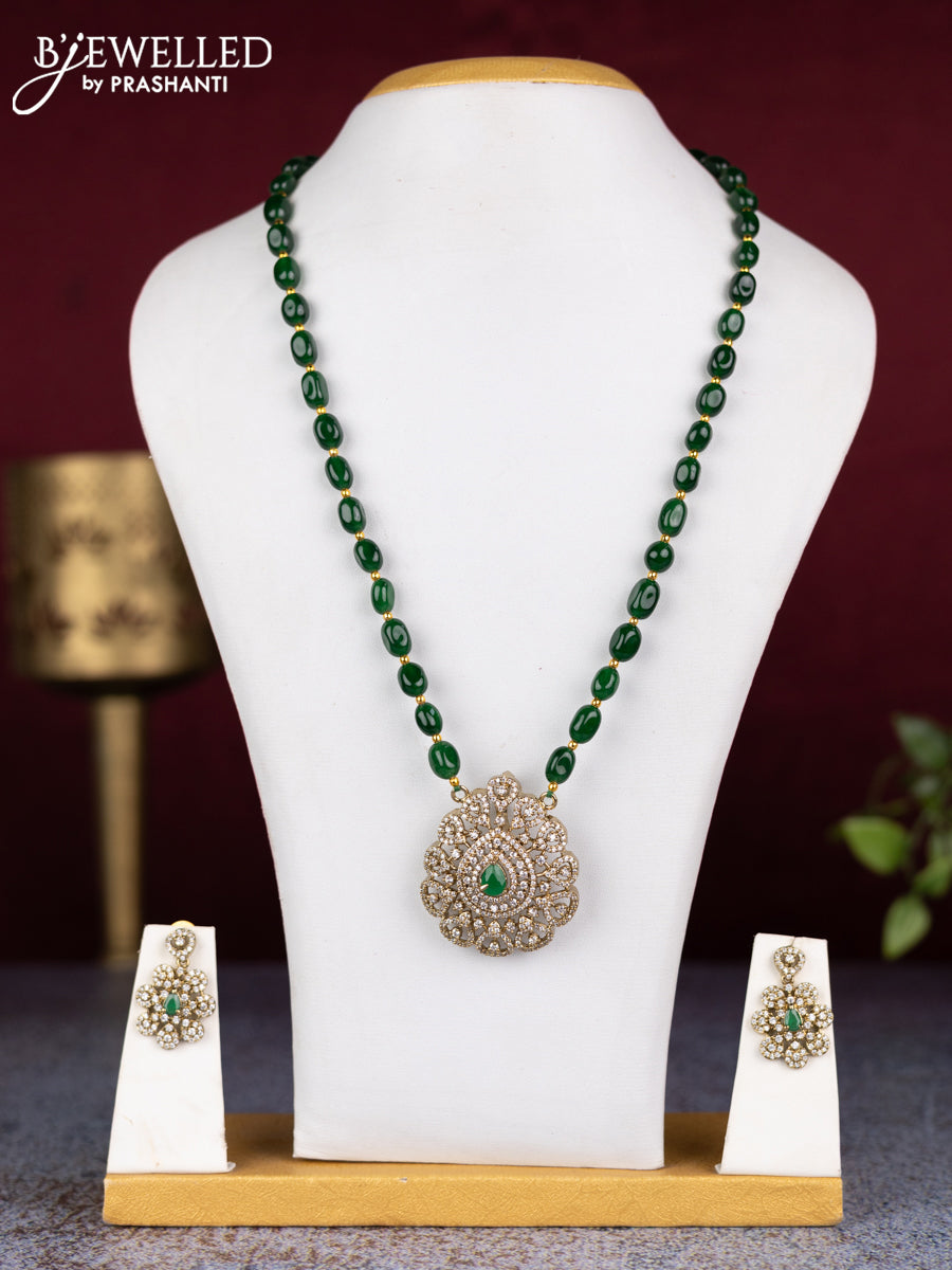 Beaded green necklace with emerald and cz stones in victorian finish