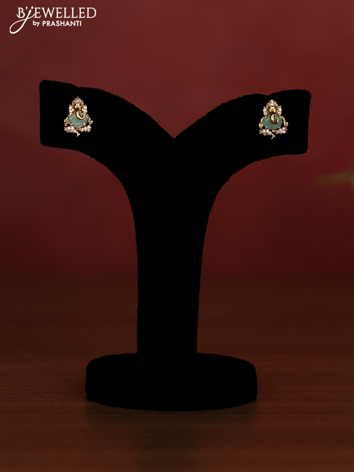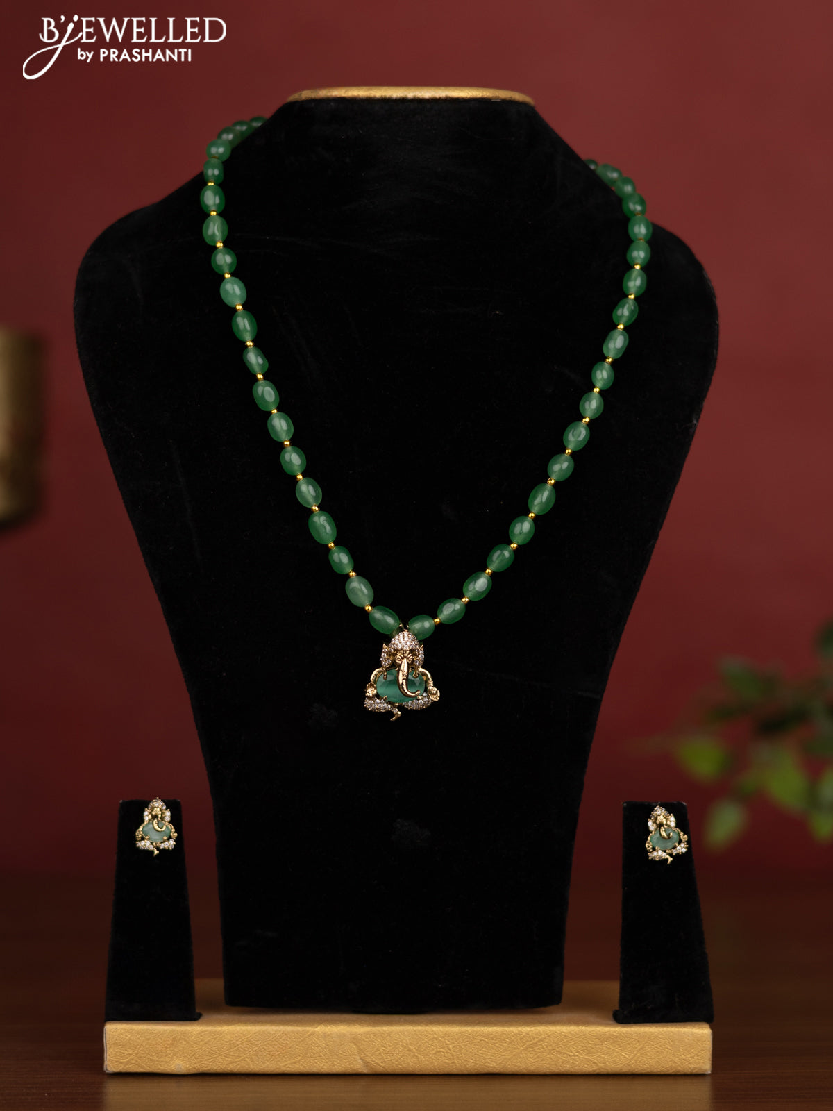 Beaded mint green necklace ganesha pendant with cz stones in victotrian finish