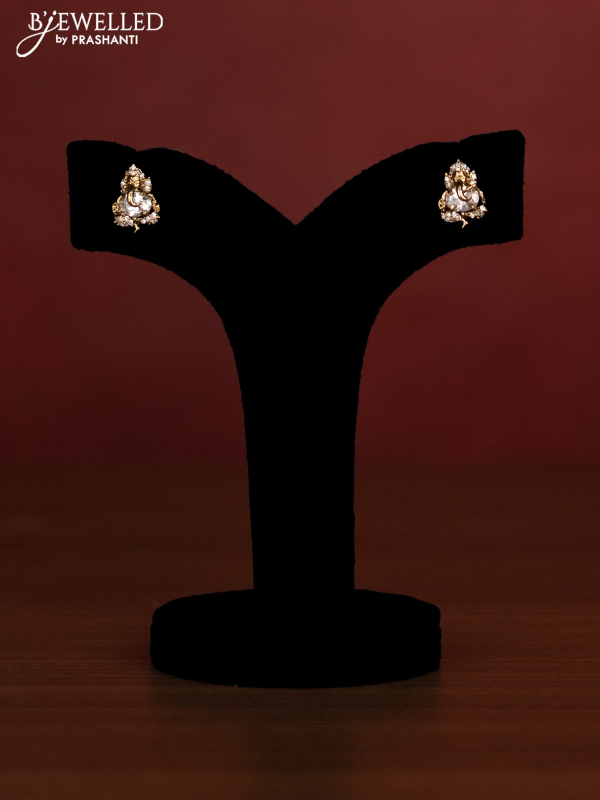 Beaded multicolour necklace ganesha pendant with cz stones in victotrian finish