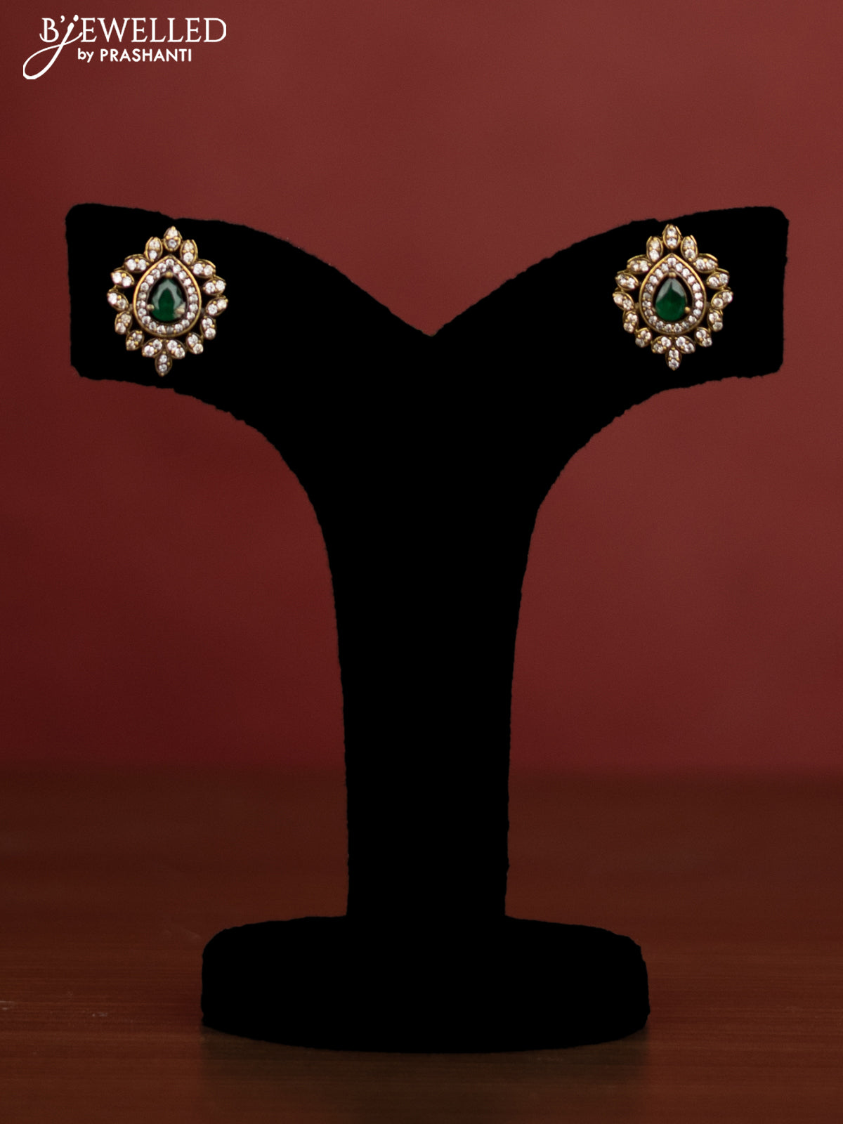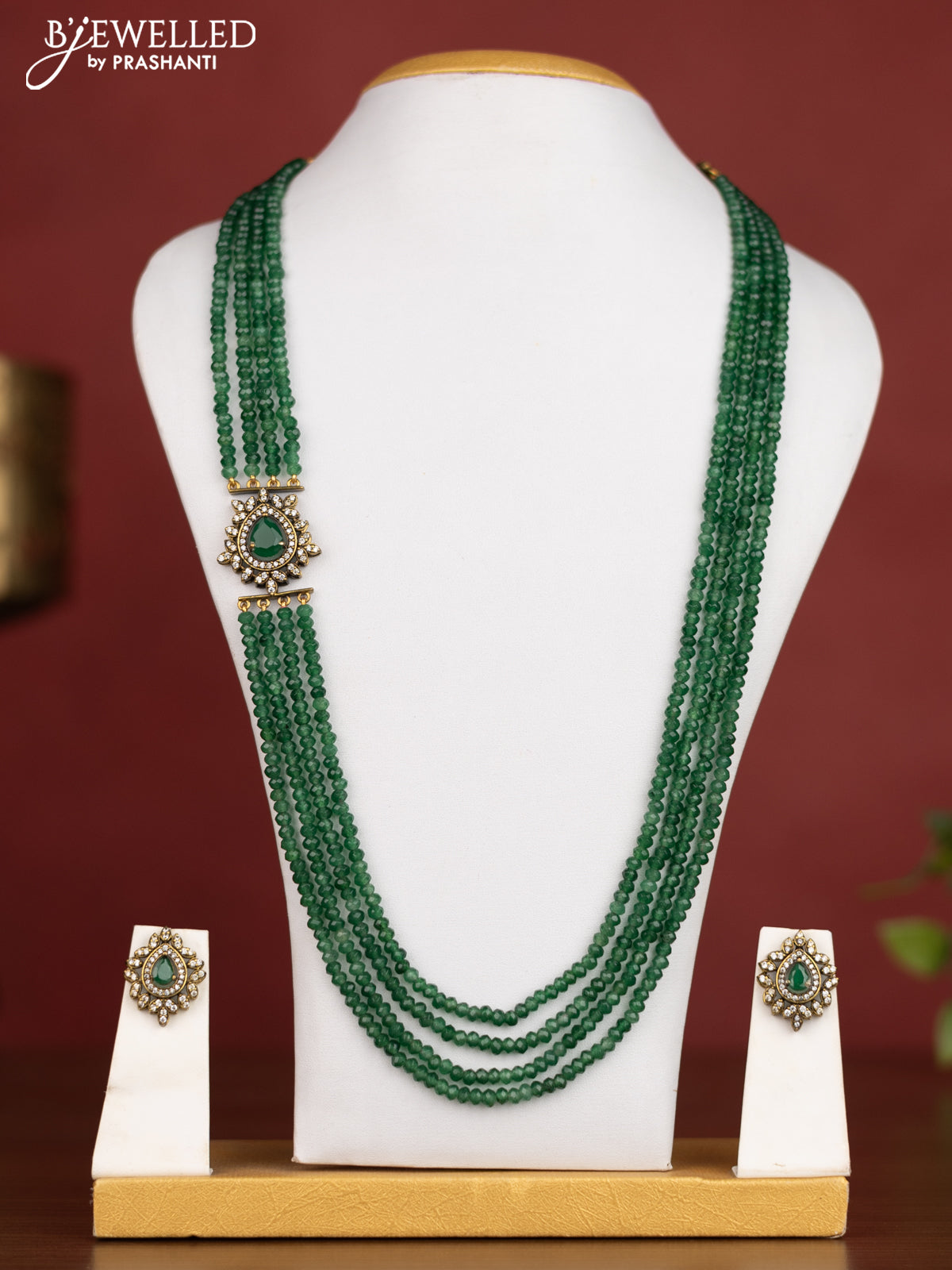 Beaded multilayer green necklace side pendant with emerald & cz stones