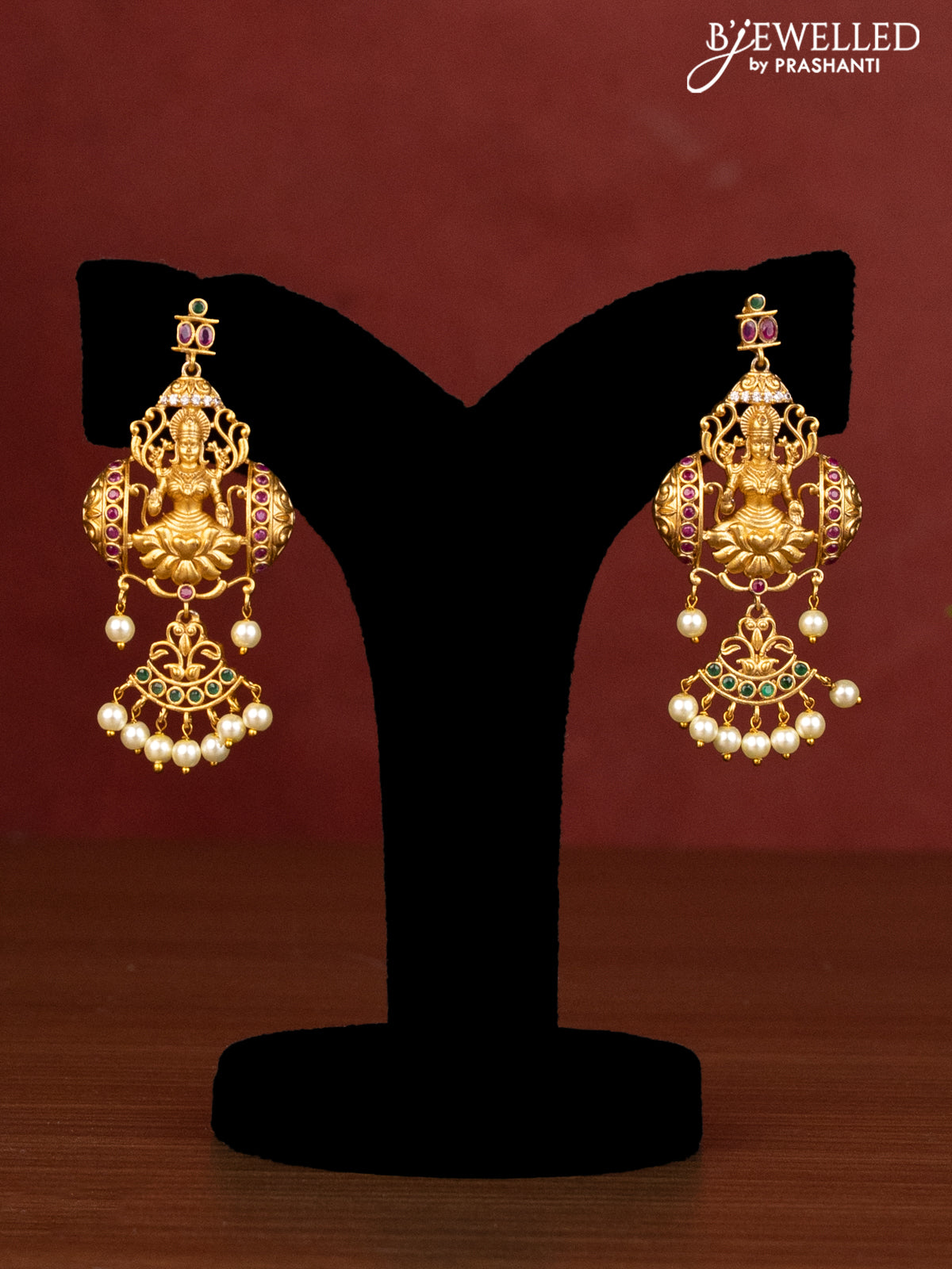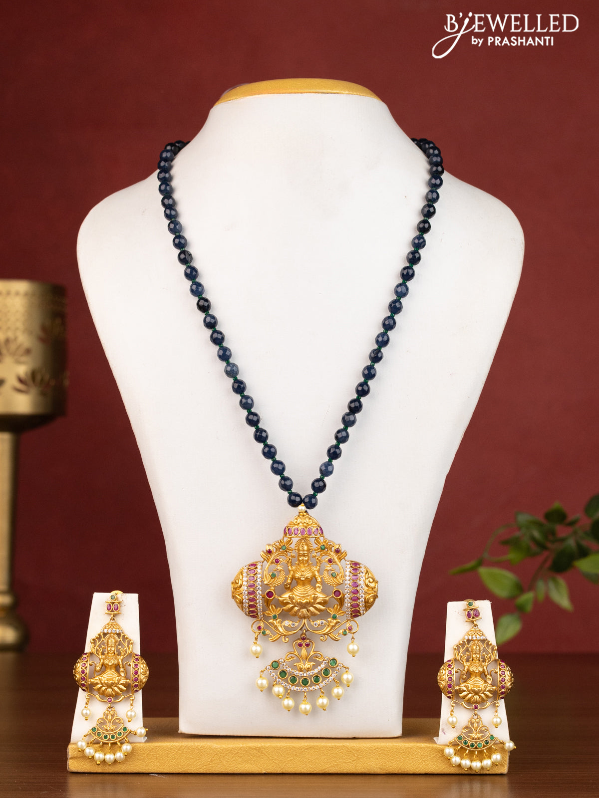 Beaded sapphire necklace lakshmi design with kemp & cz stones and pearl hanging