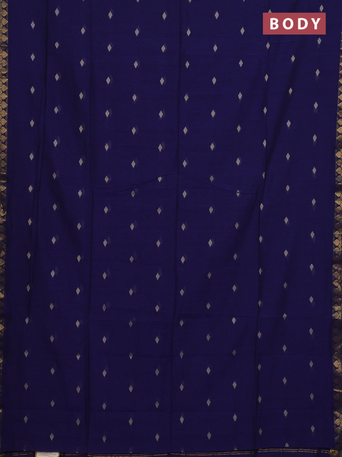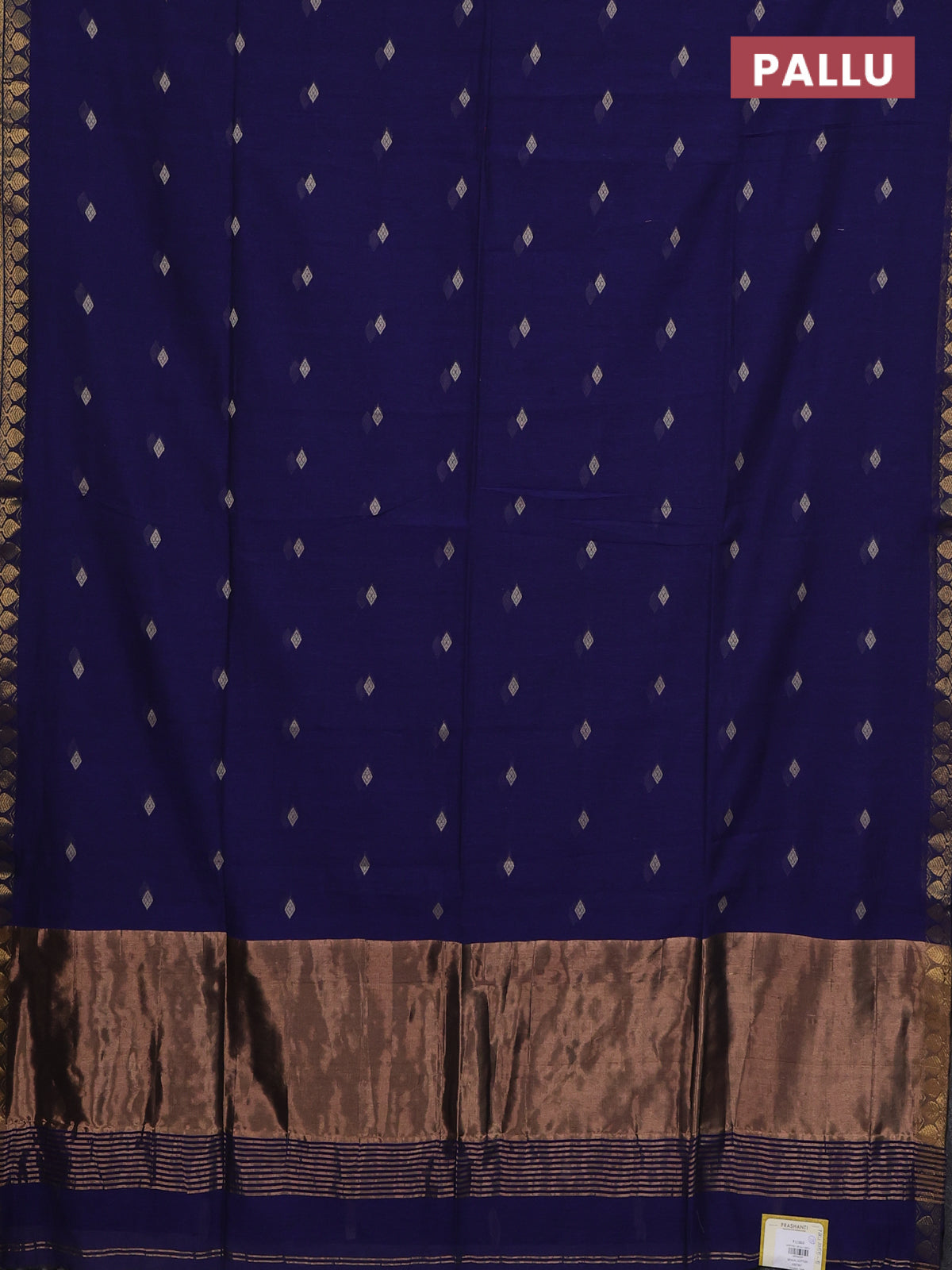 Bengal soft cotton saree blue with thread woven buttas and zari woven border