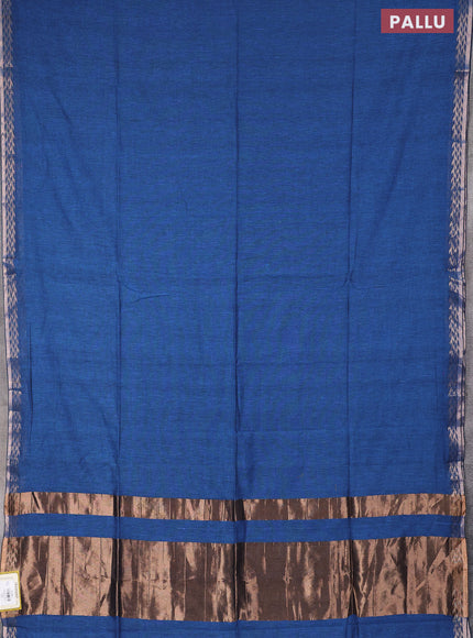 Bengal soft cotton saree cs blue with plain body and zari woven border