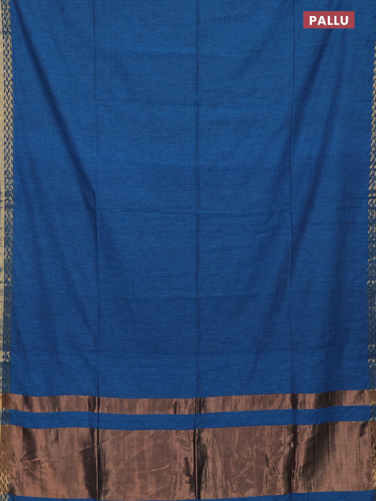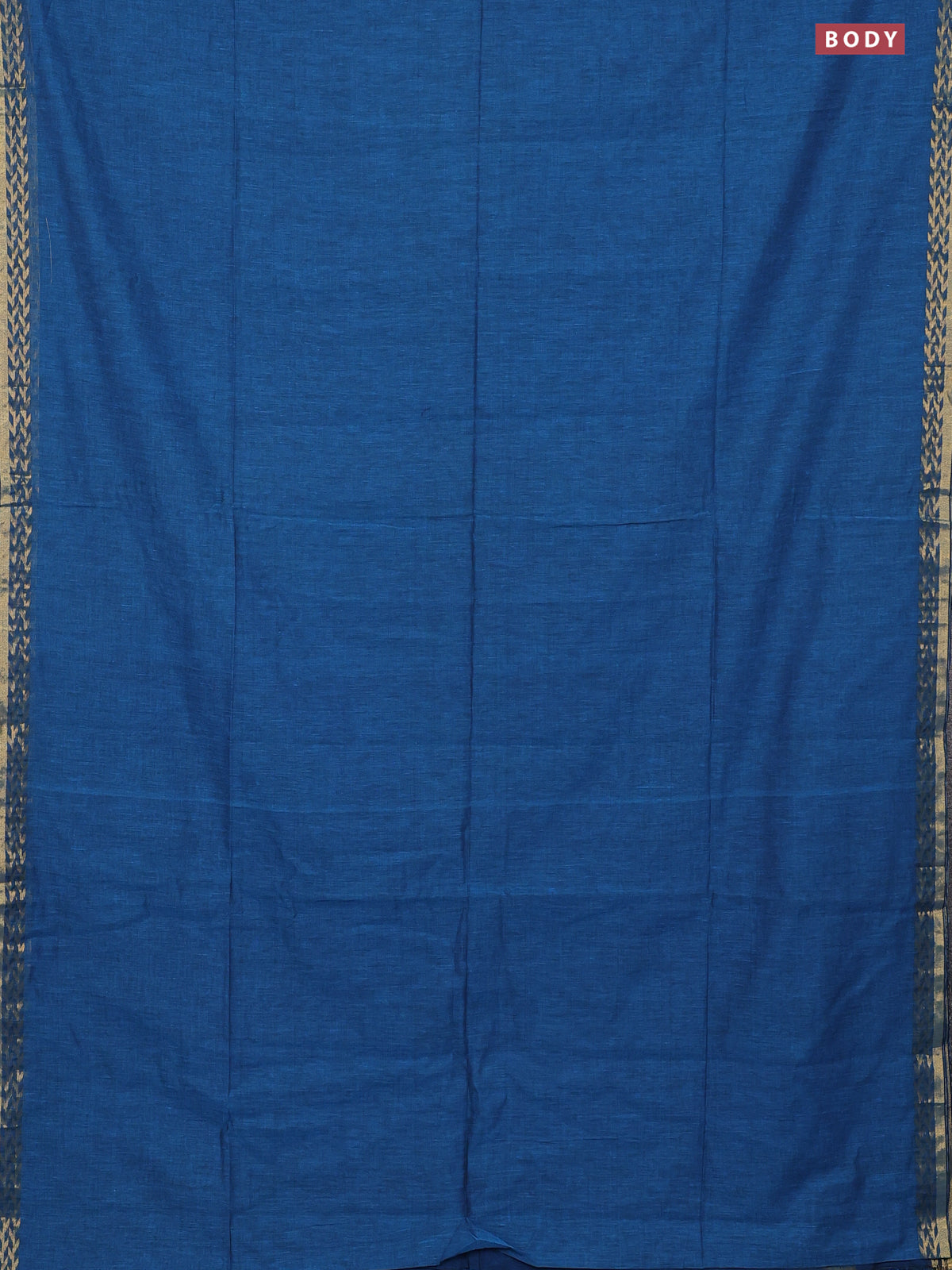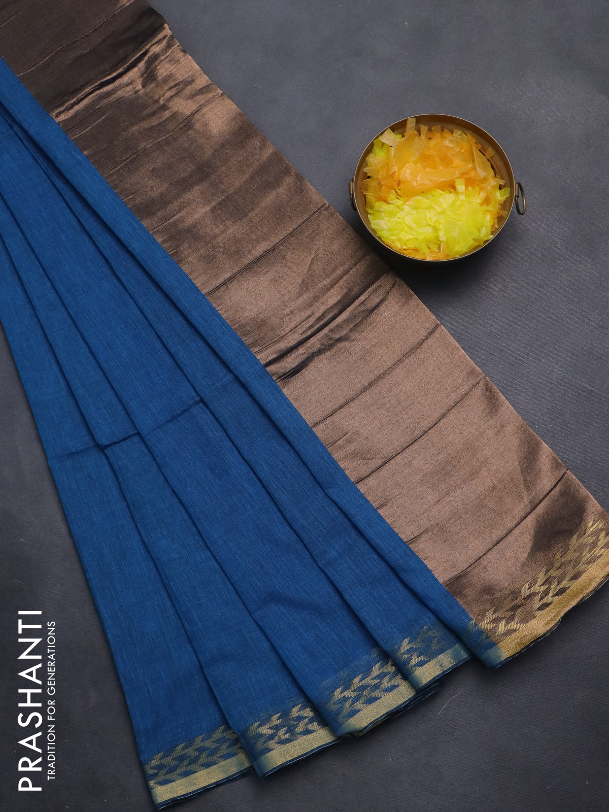 Bengal soft cotton saree cs blue with plain body and zari woven border