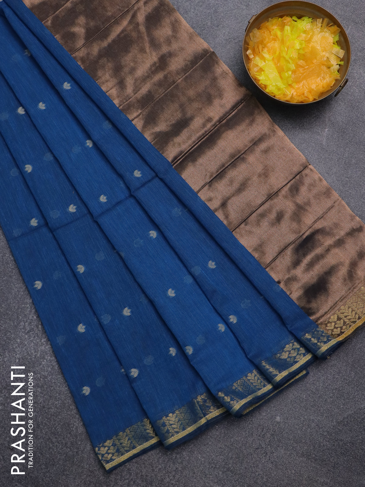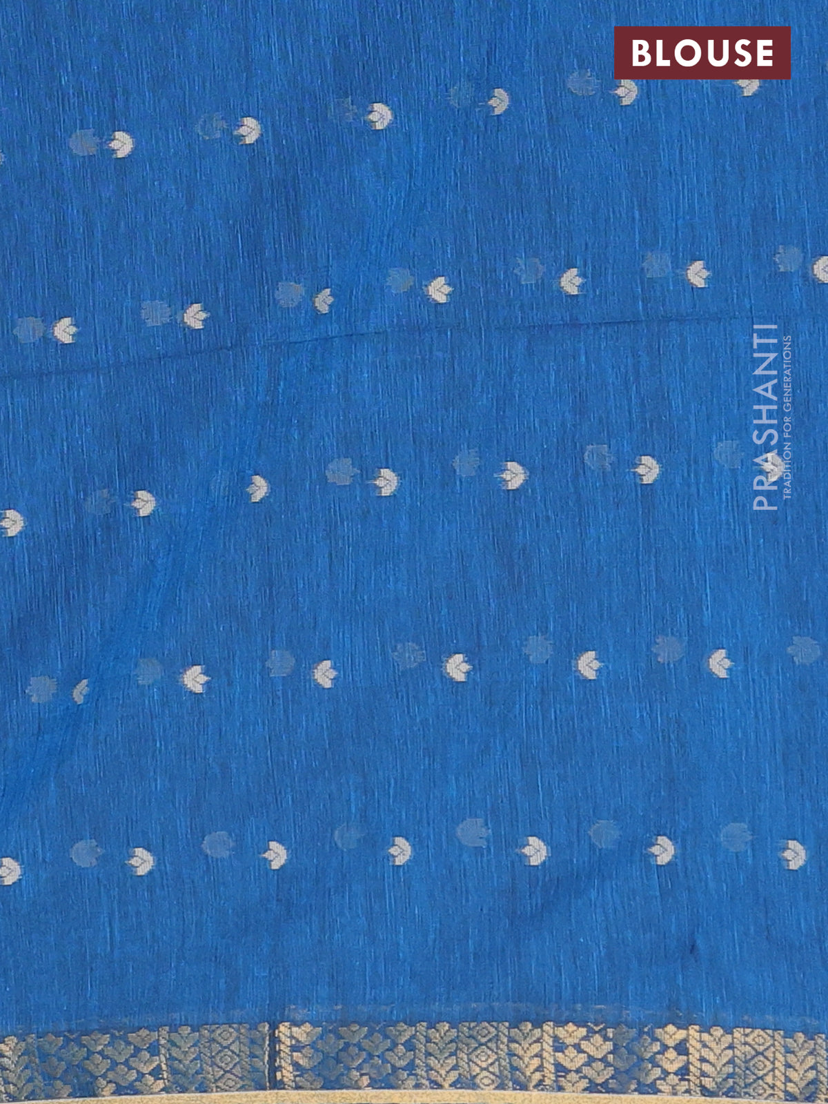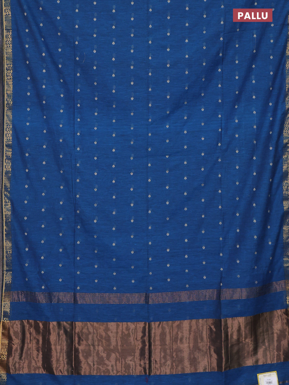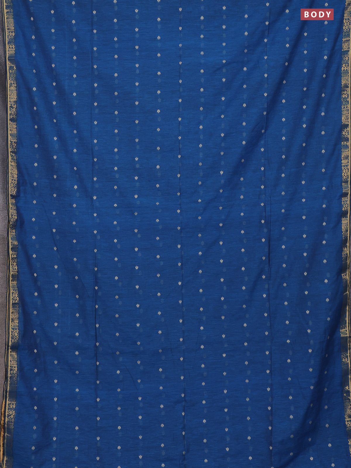 Bengal soft cotton saree cs blue with thread woven buttas and zari woven border