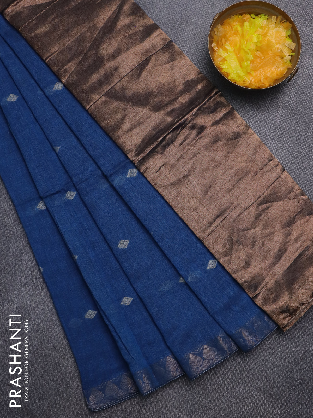 Bengal soft cotton saree cs blue with thread woven buttas and zari woven border