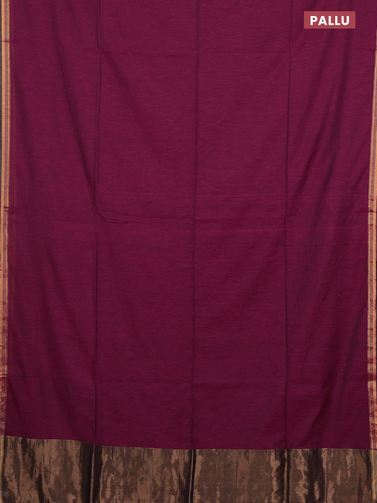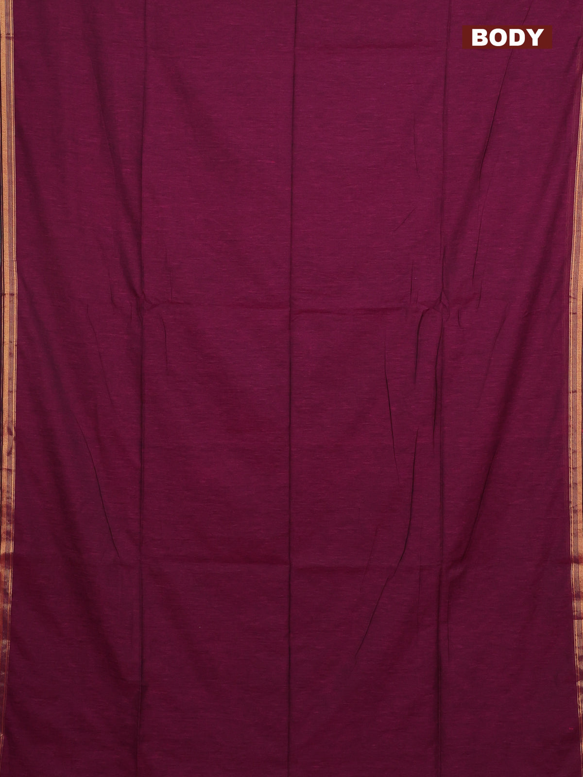 Bengal soft cotton saree dark magenta pink and yellow with plain body and zari woven border
