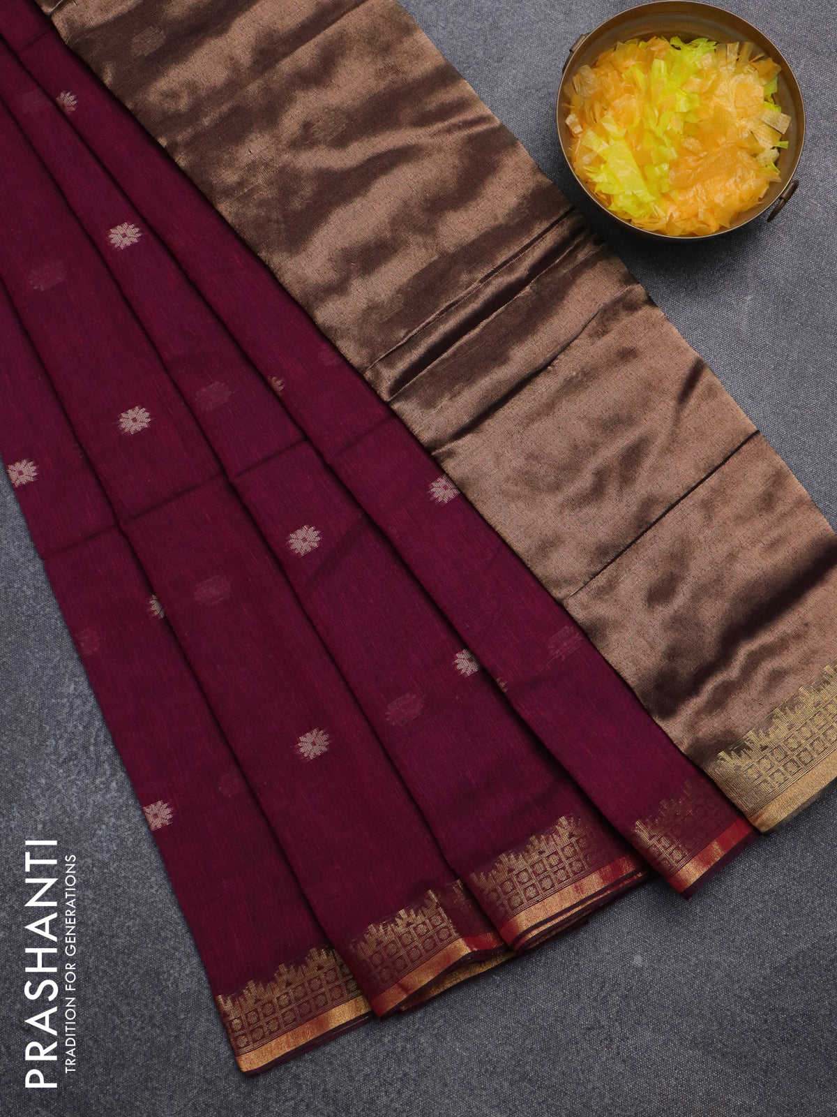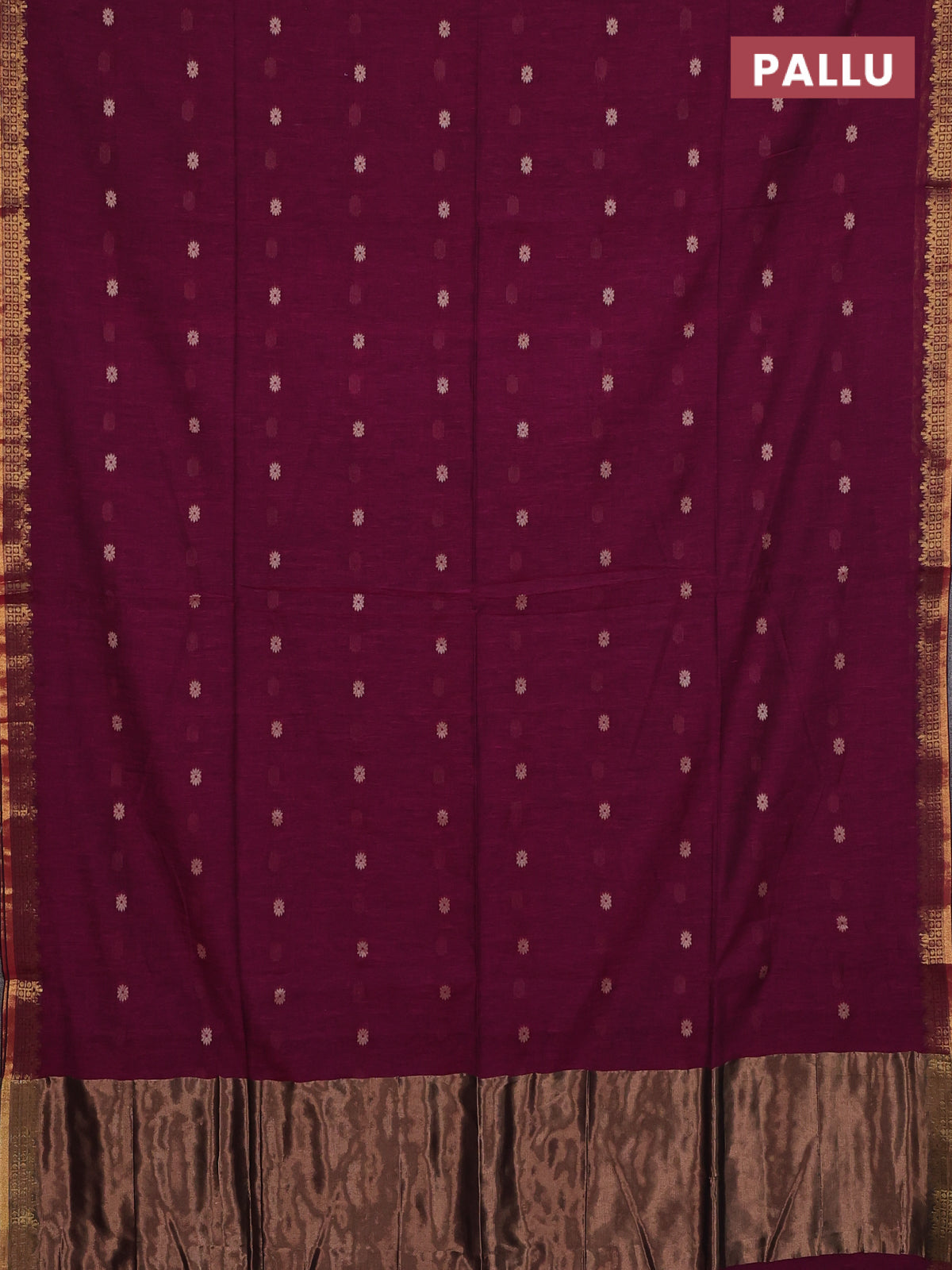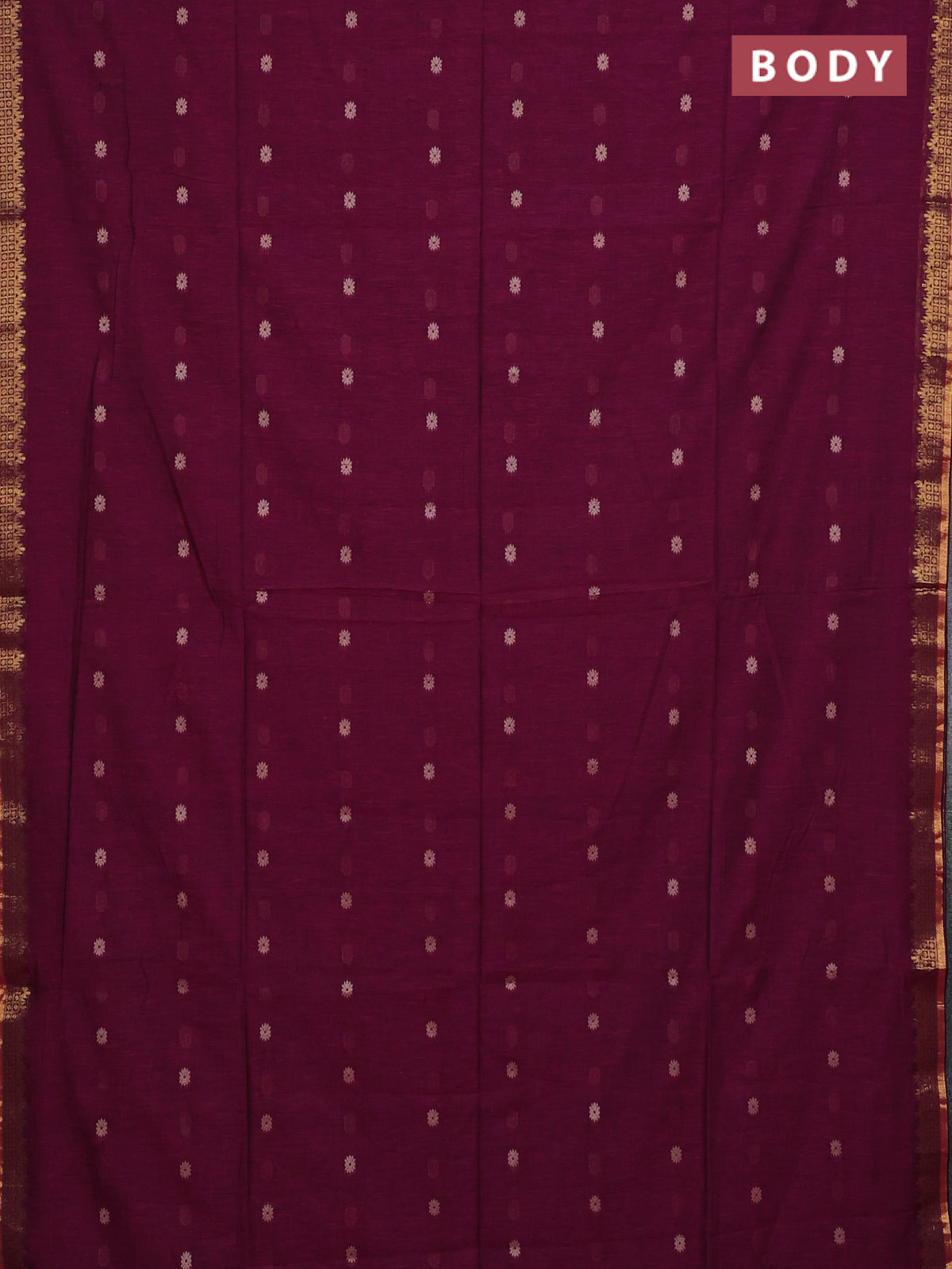 Bengal soft cotton saree dark magenta pink with thread woven buttas and zari woven border