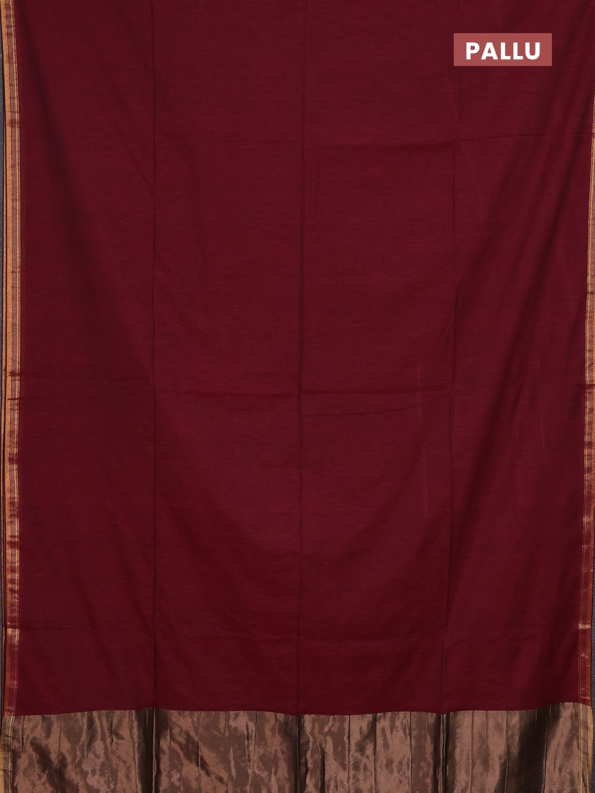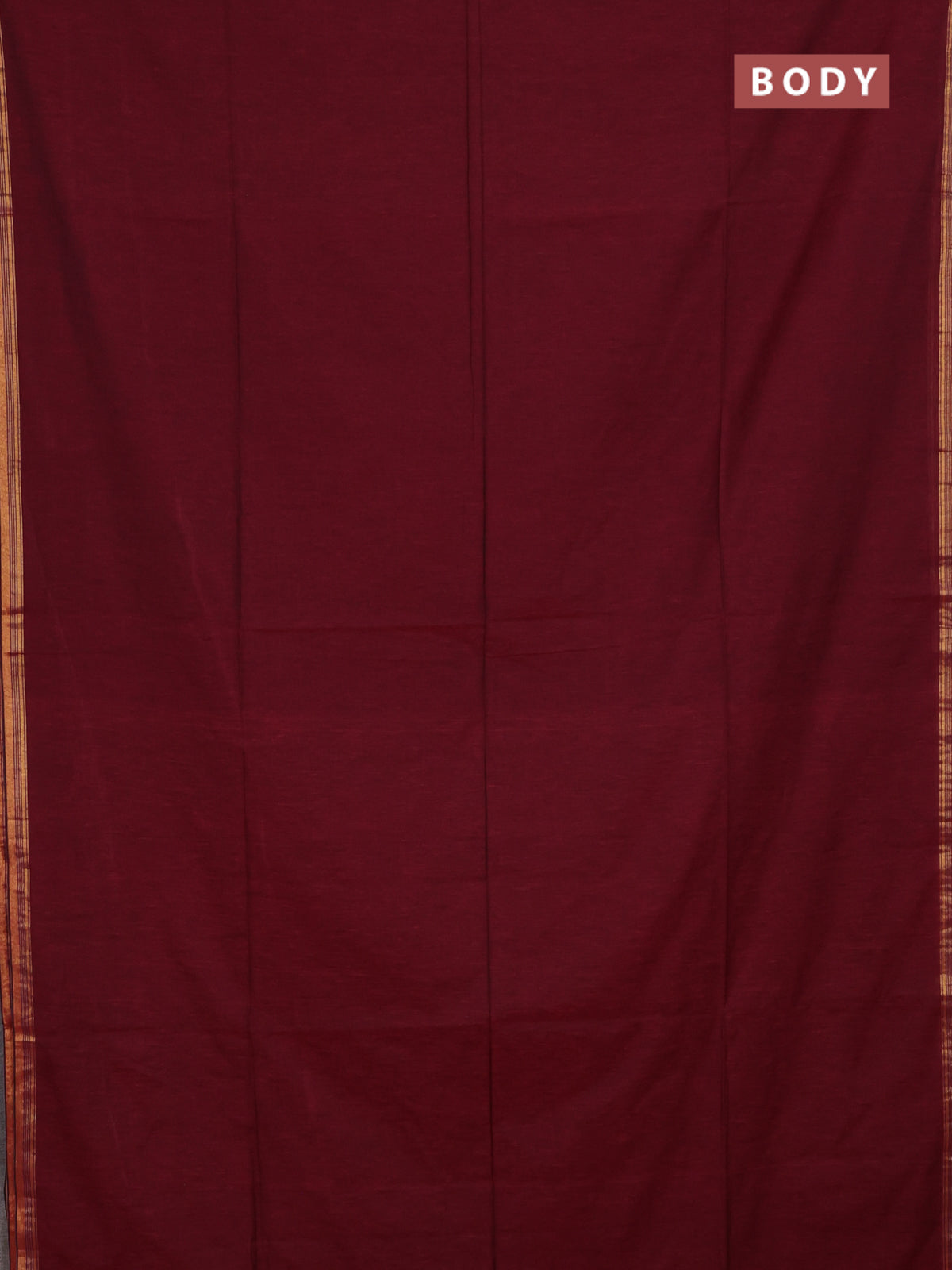 Bengal soft cotton saree maroon and green with plain body and zari woven border