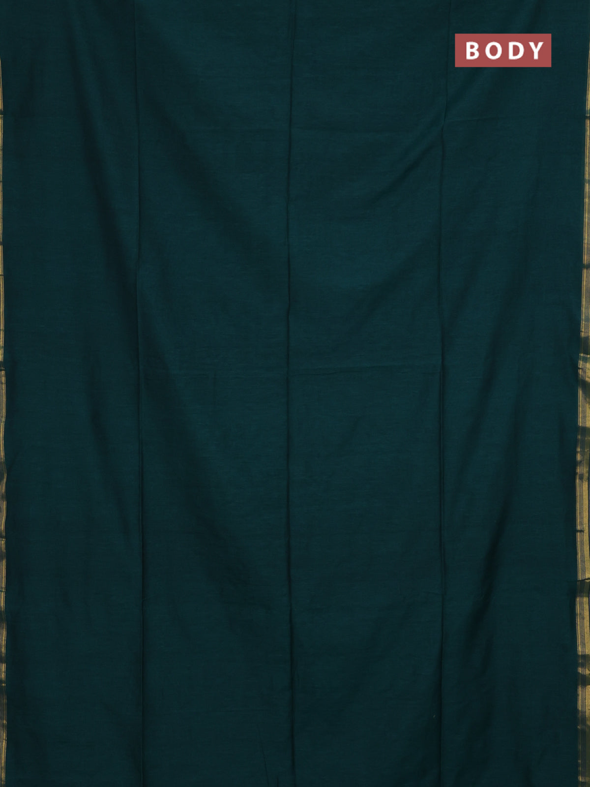 Bengal soft cotton saree teal green and maroon with plain body and zari woven border