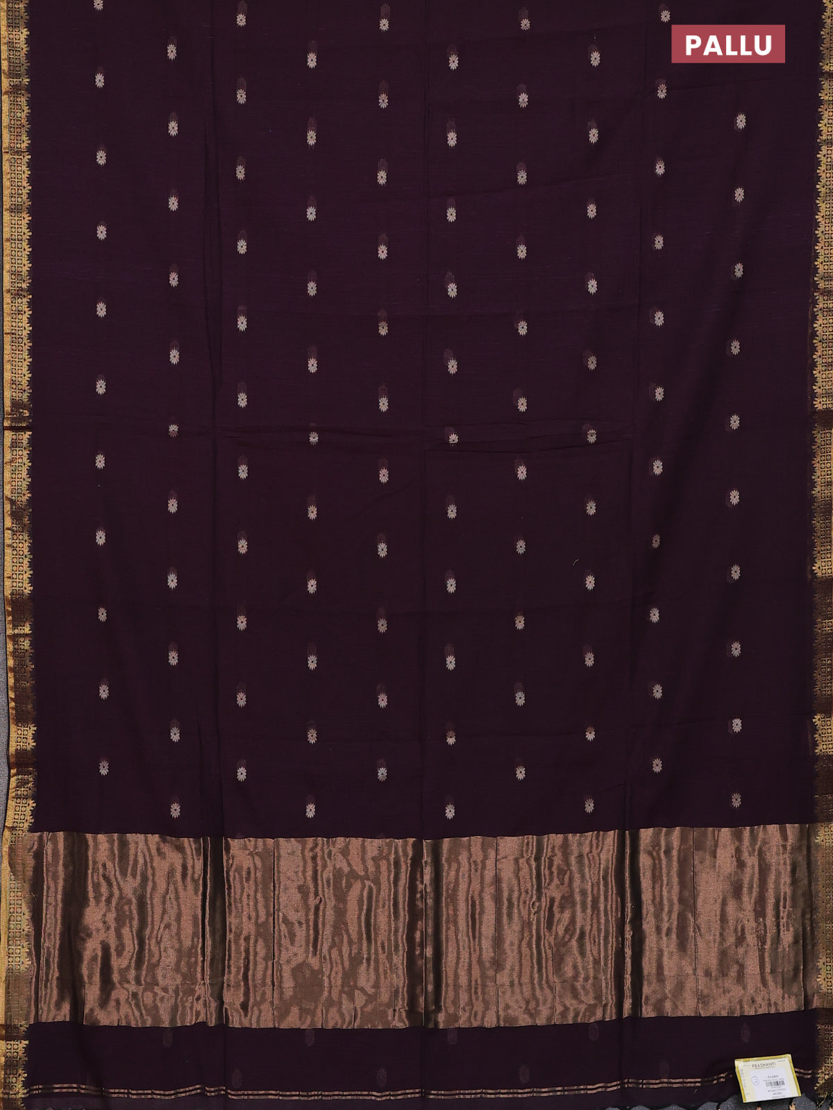 Bengal soft cotton saree wine shade with thread woven buttas and zari woven border