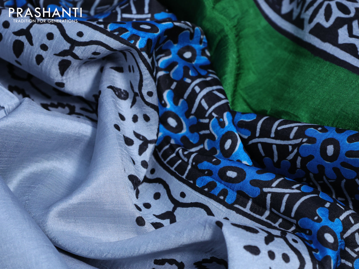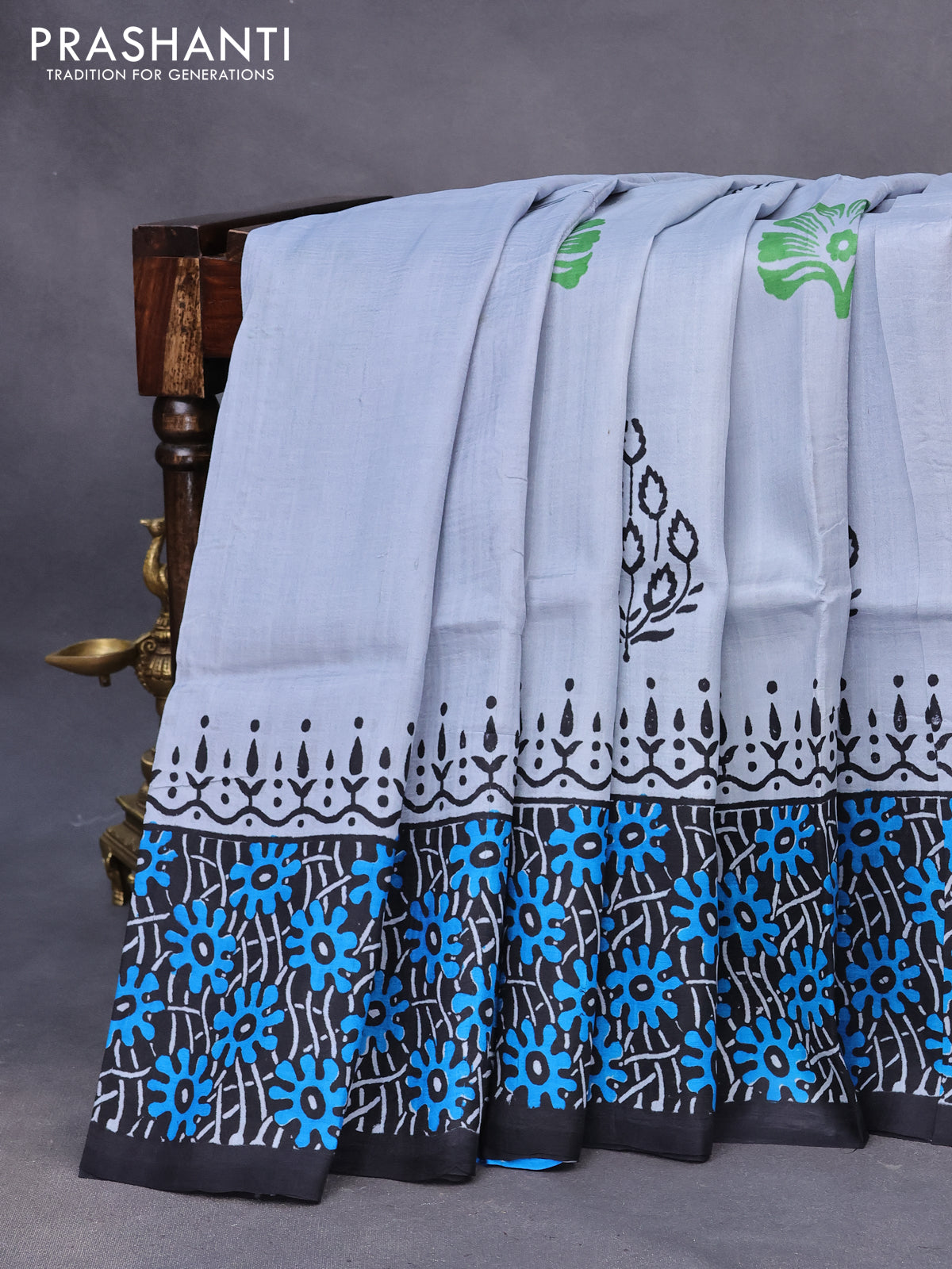 Bishnupuri silk saree grey and black with butta prints and printed border