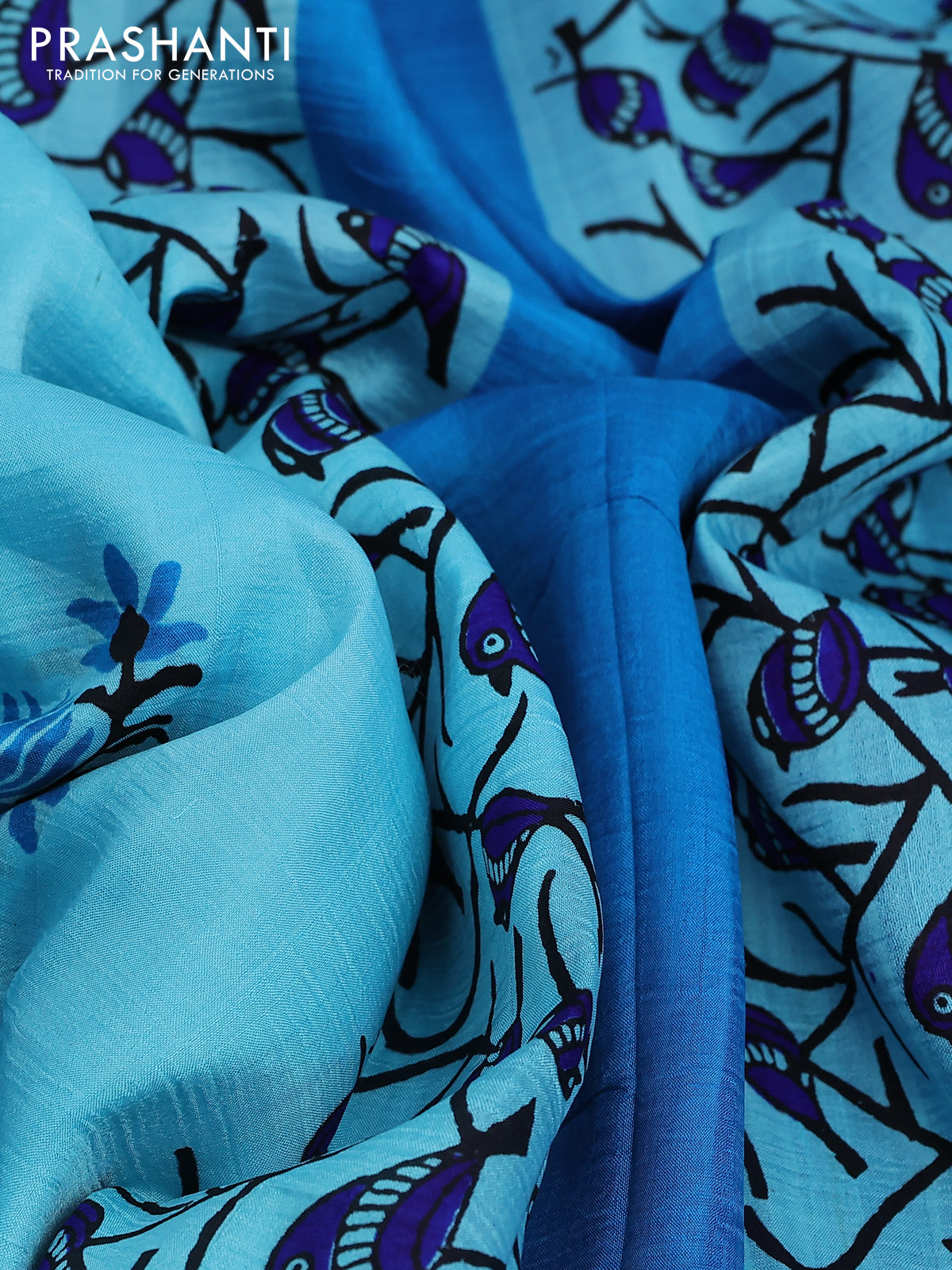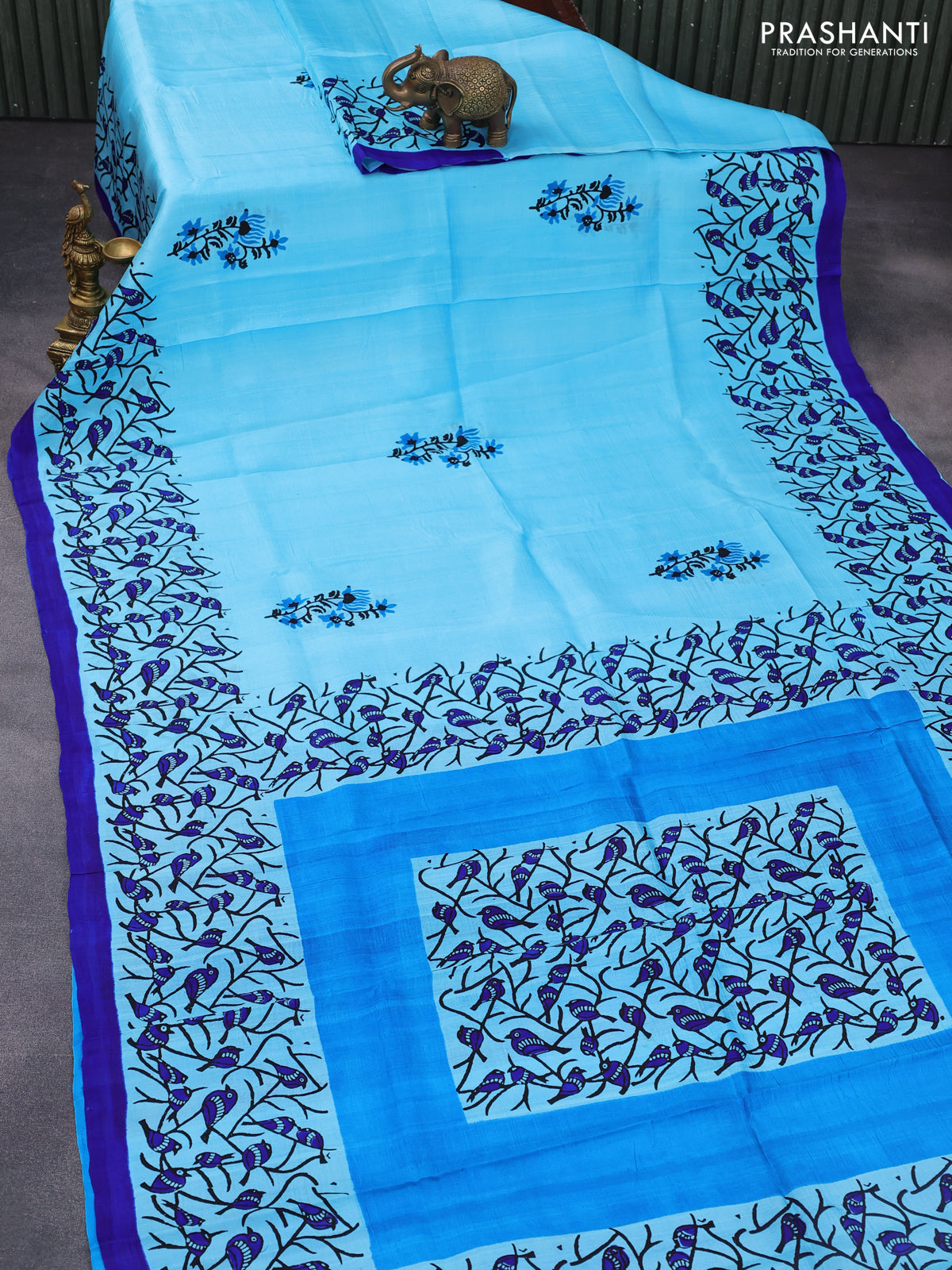Bishnupuri silk saree light blue and blue with butta prints and printed border