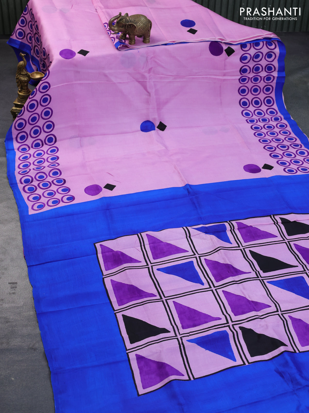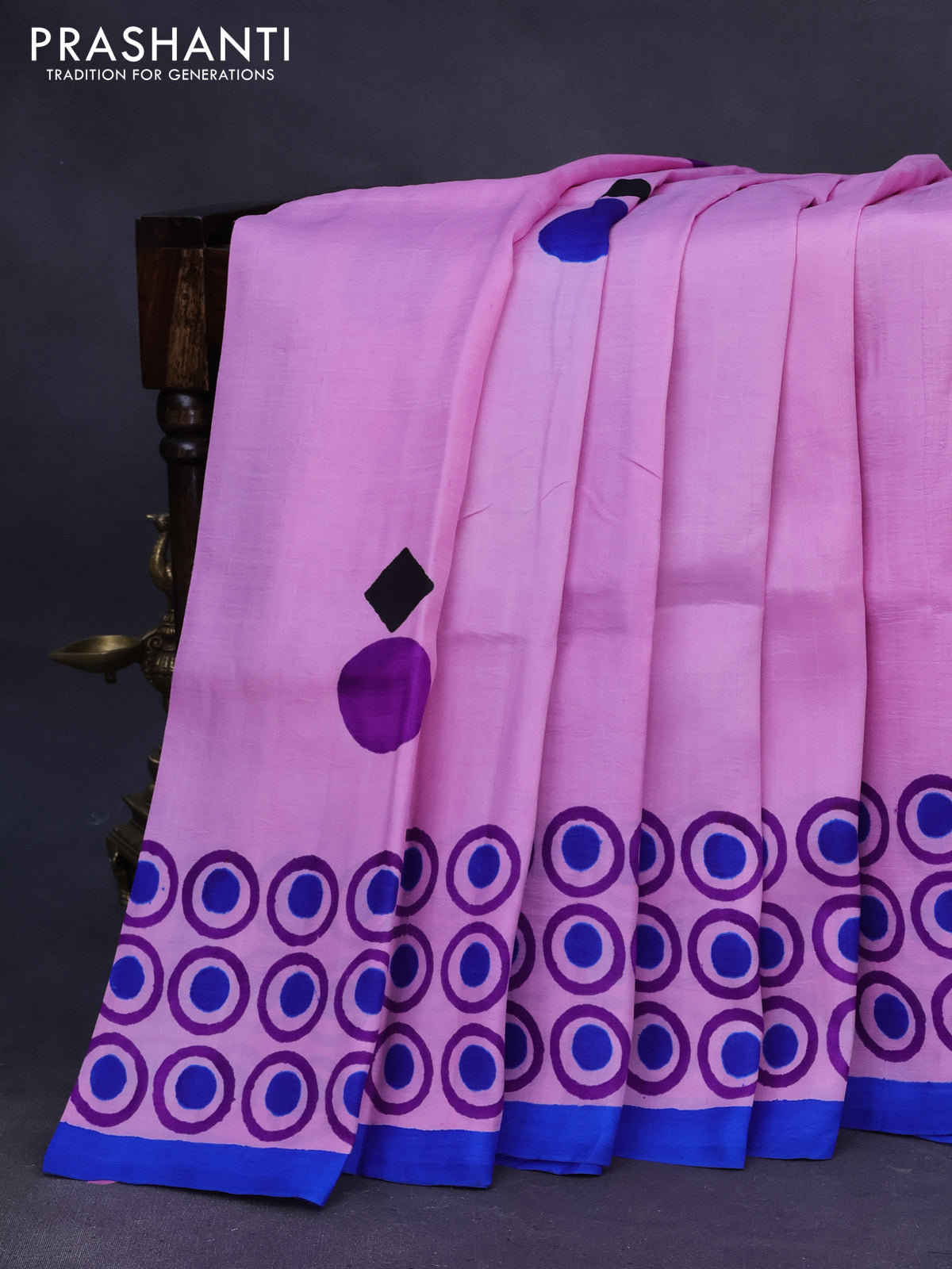 Bishnupuri silk saree light pink and blue with butta prints and printed border