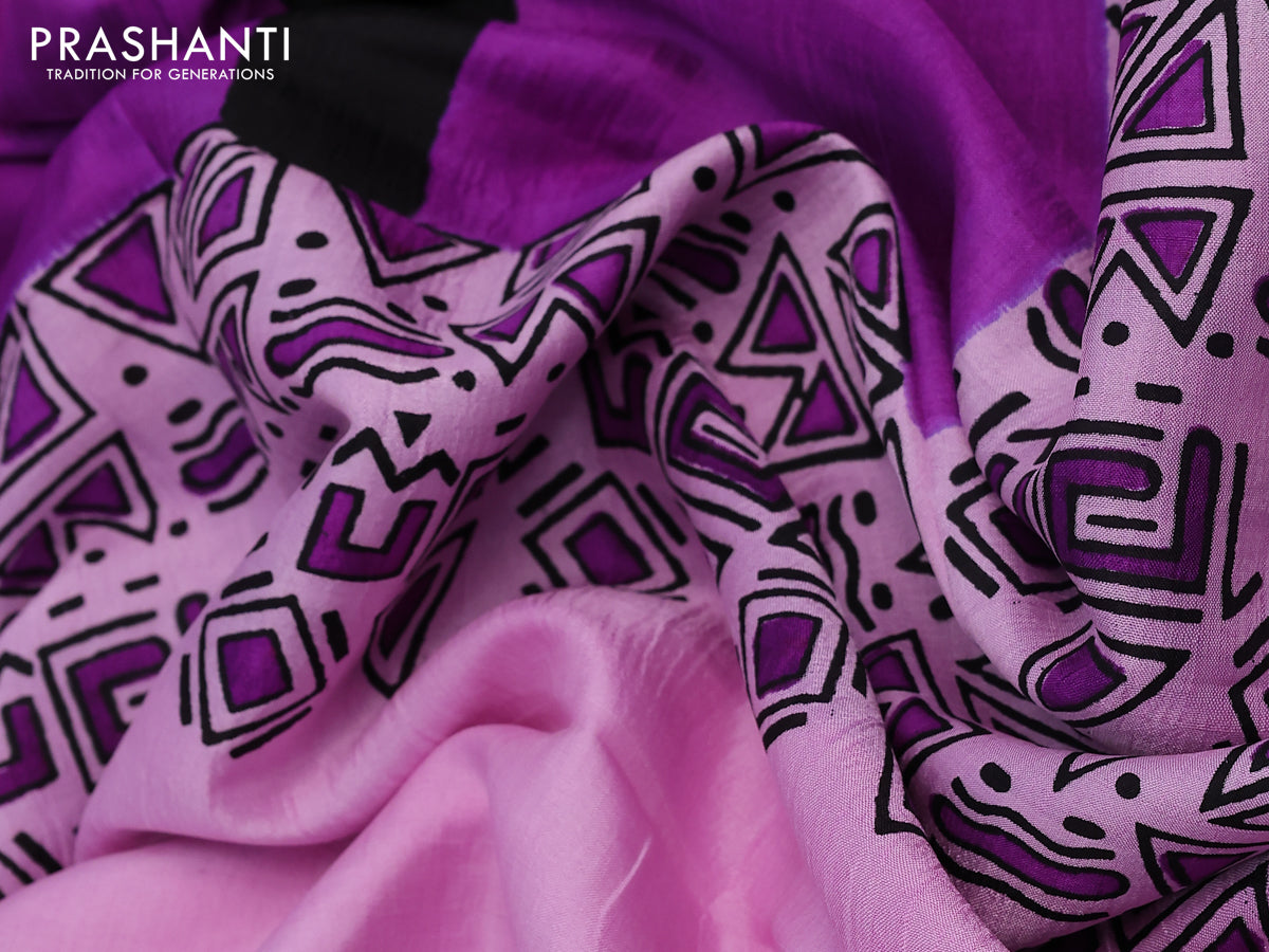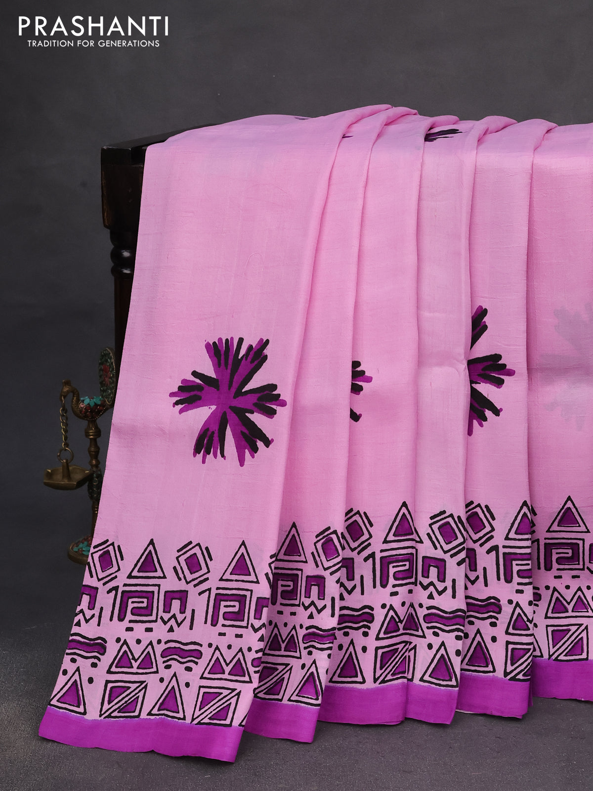 Bishnupuri silk saree lotus pink and purple with butta prints and printed border