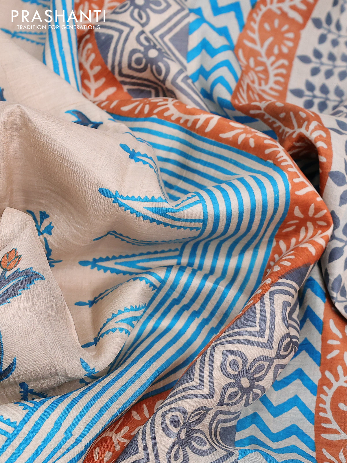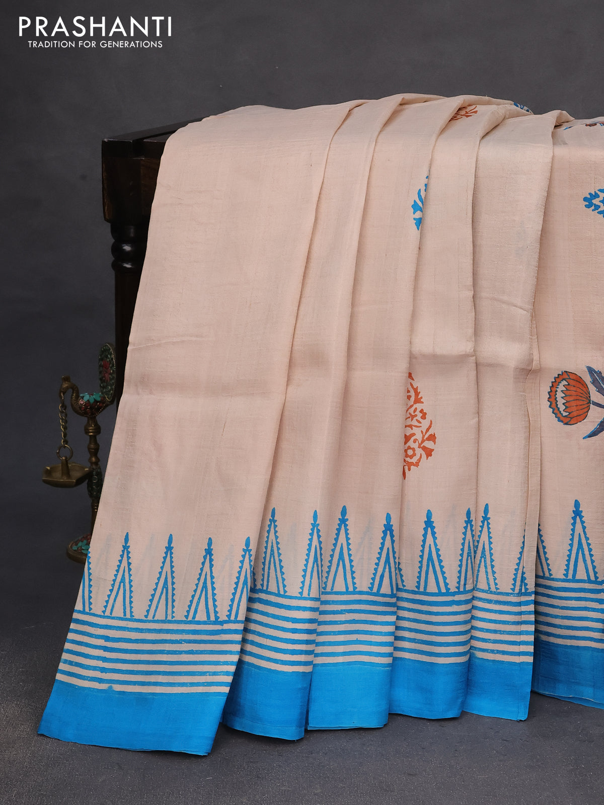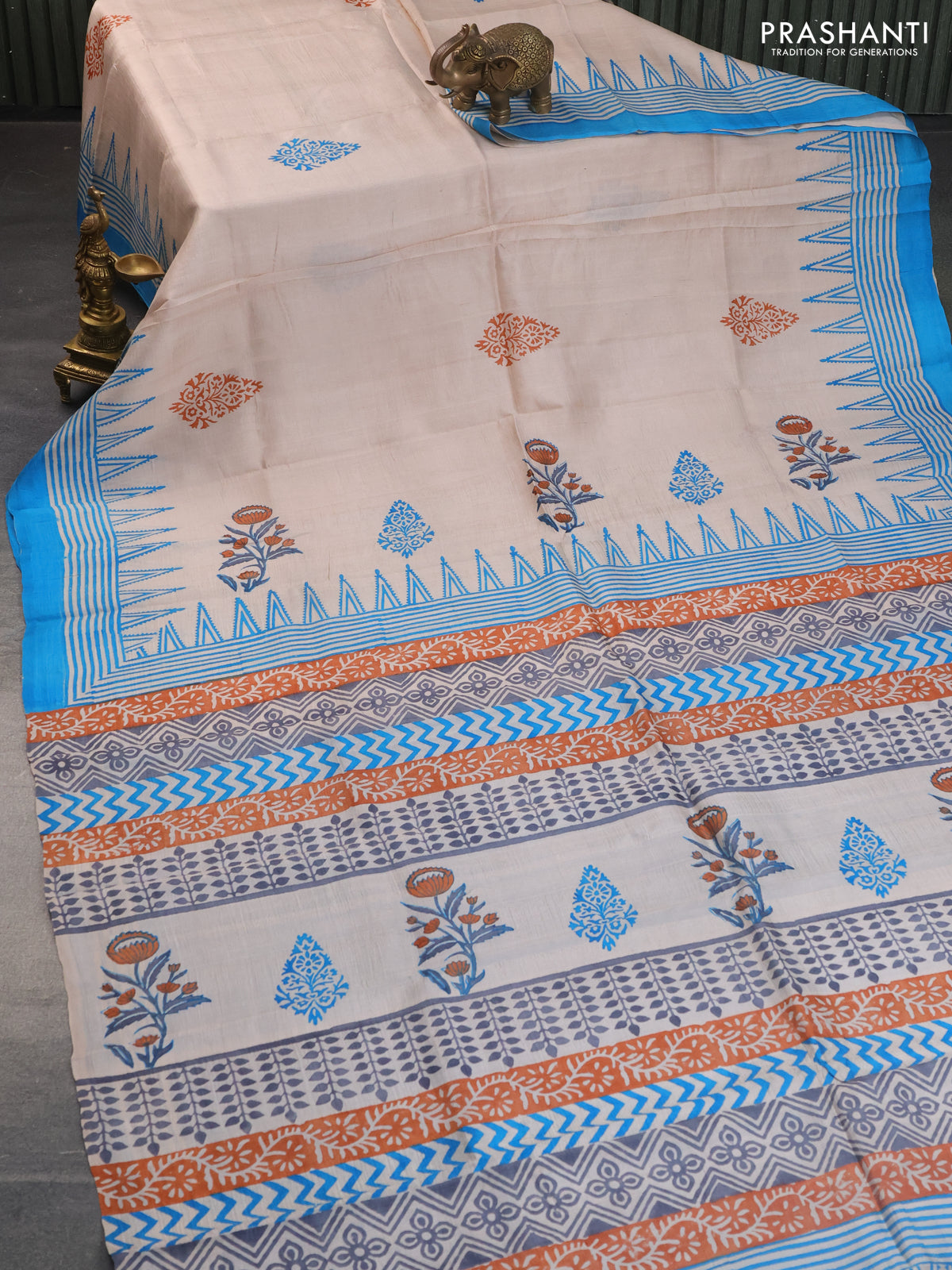 Bishnupuri silk saree pastel brown and cs blue with butta prints and printed border