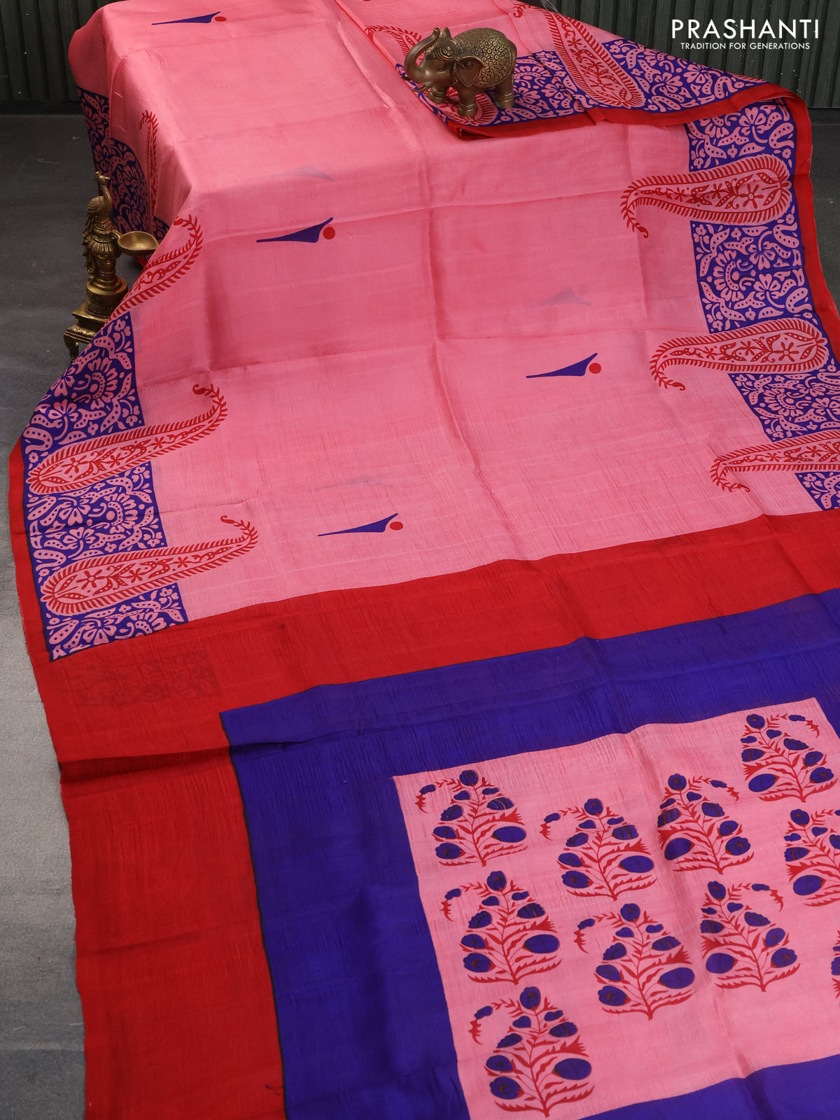 Bishnupuri silk saree peach pink and blue with butta prints and printed border