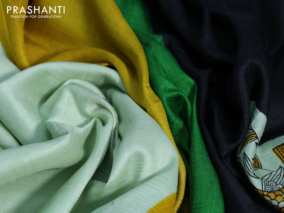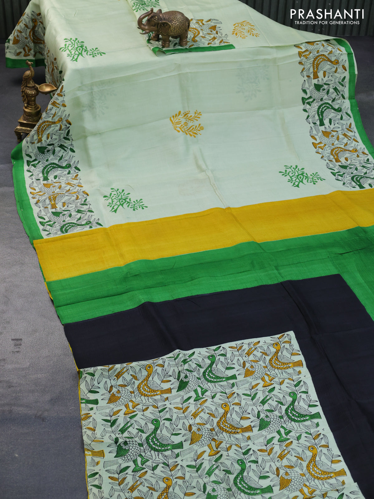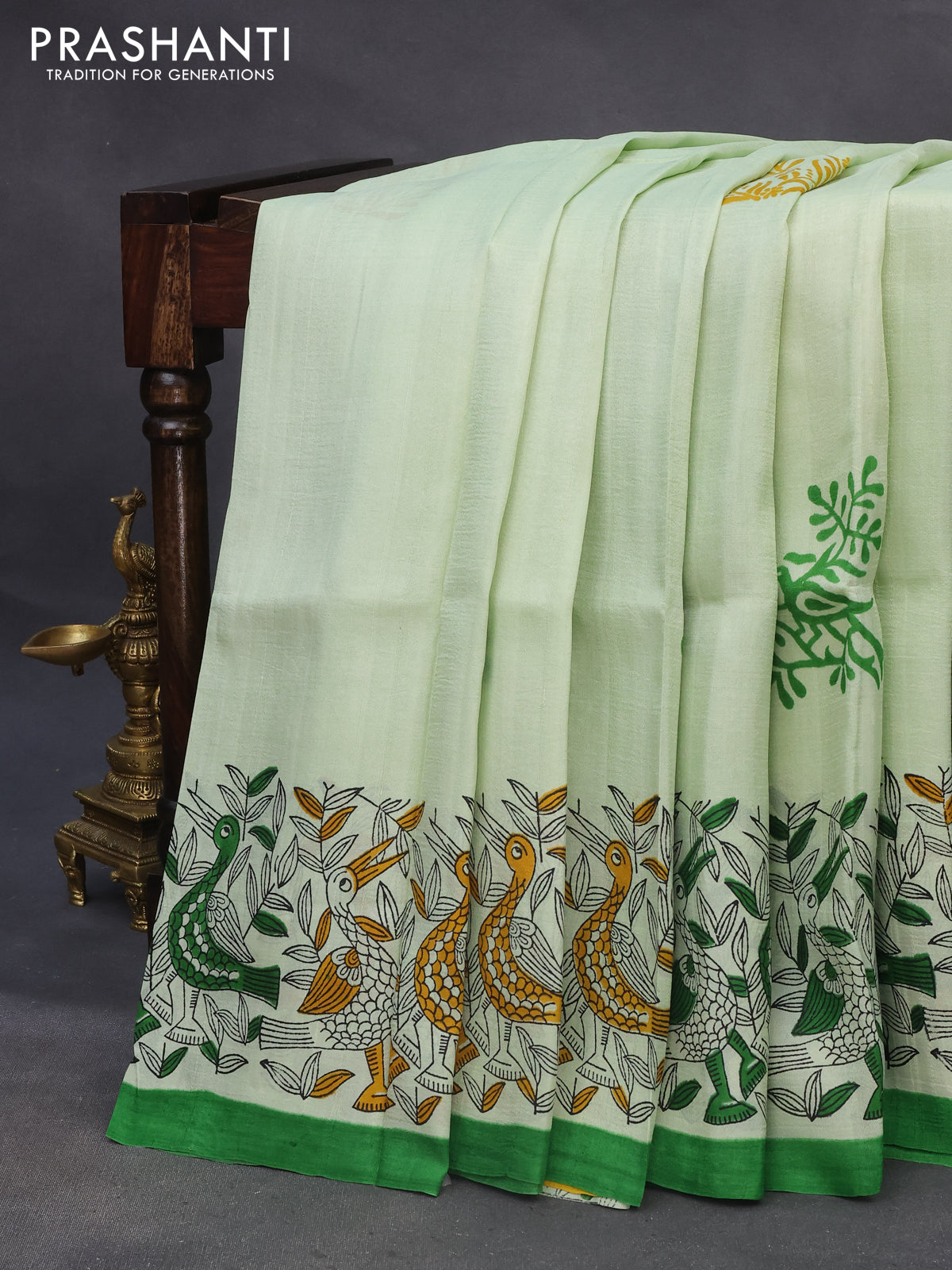 Bishnupuri silk saree pista green and green with butta prints and printed border