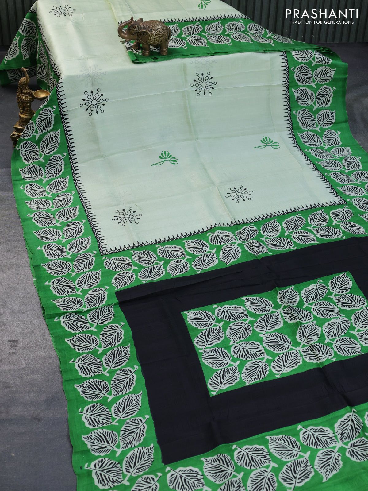 Bishnupuri silk saree pista green and green with butta prints and printed border