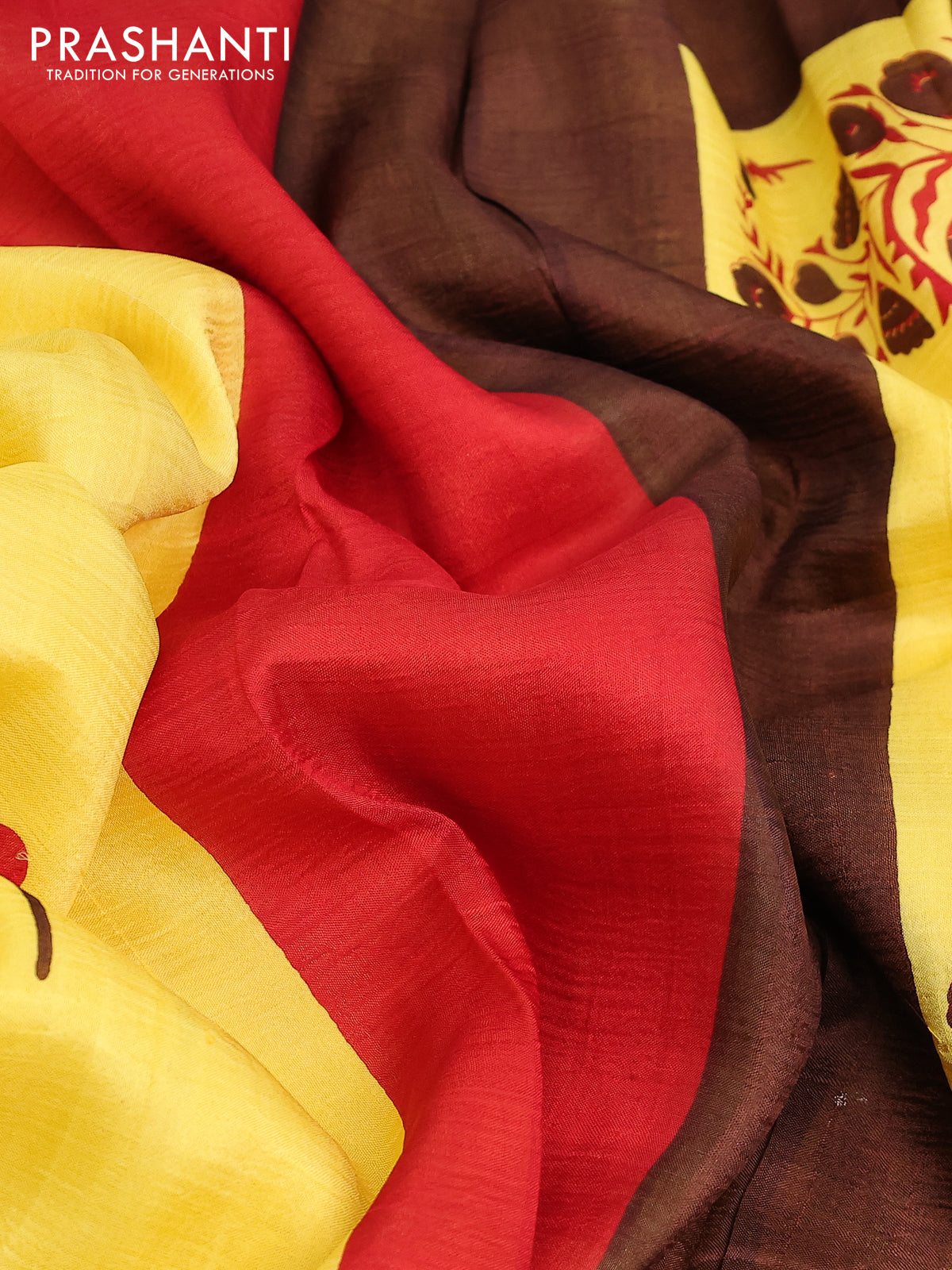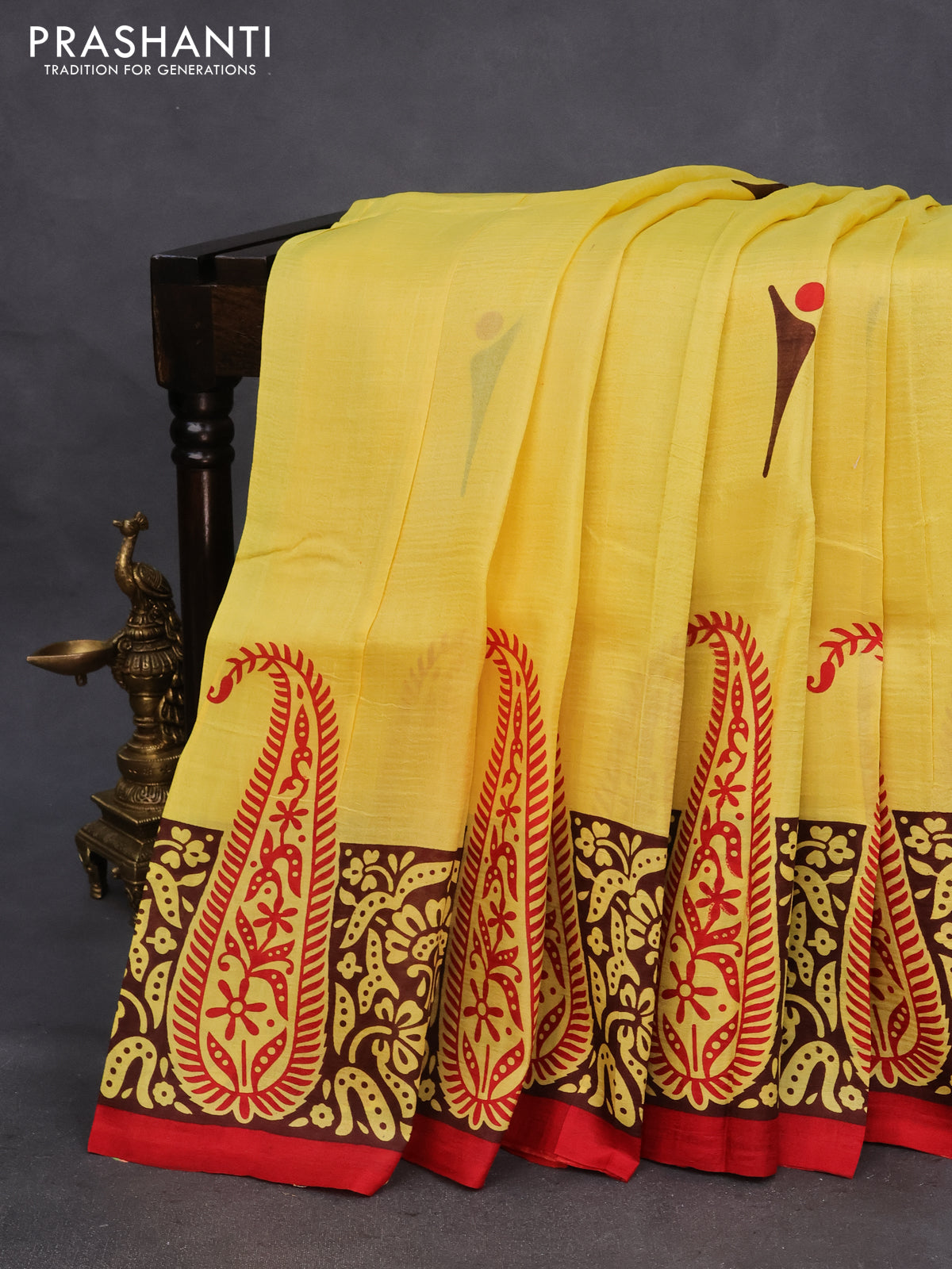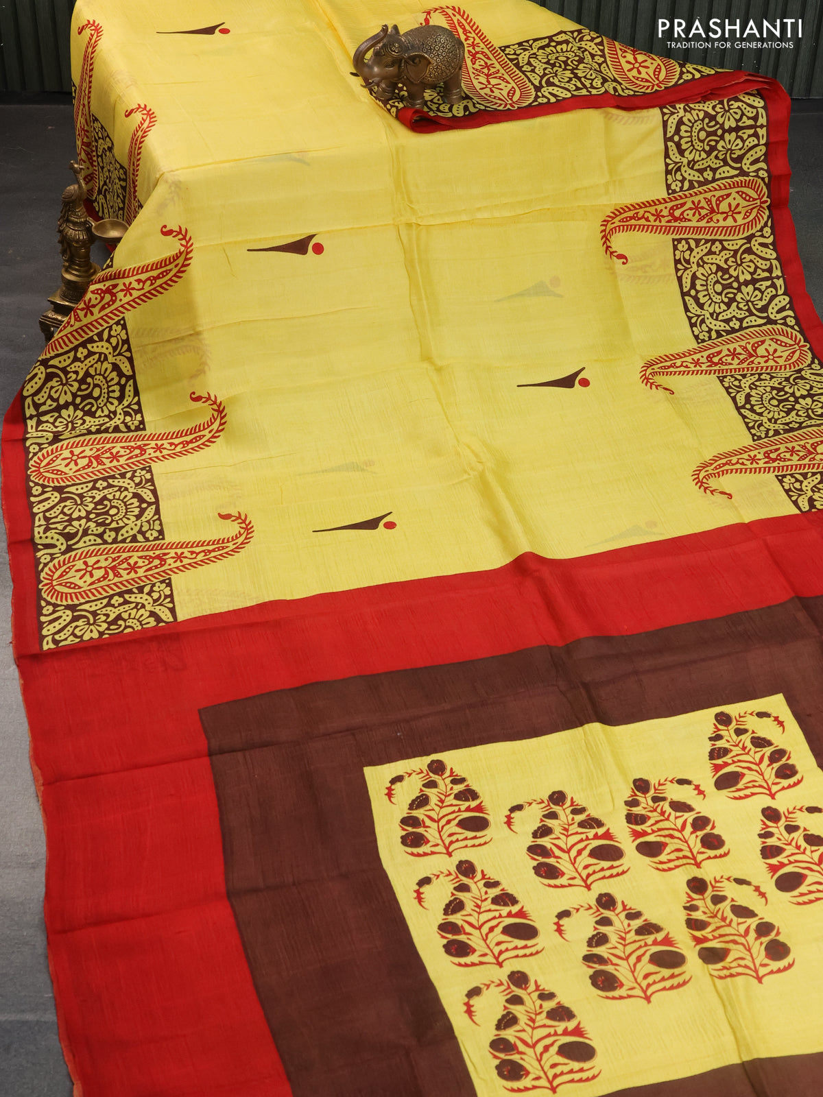 Bishnupuri silk saree yellow and brown with butta prints and printed border