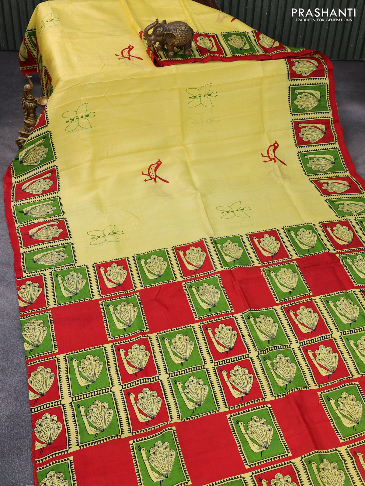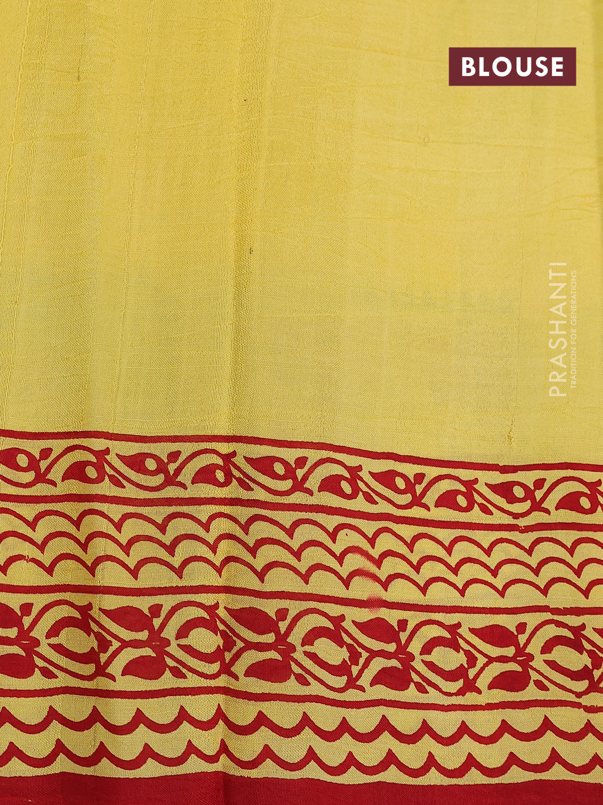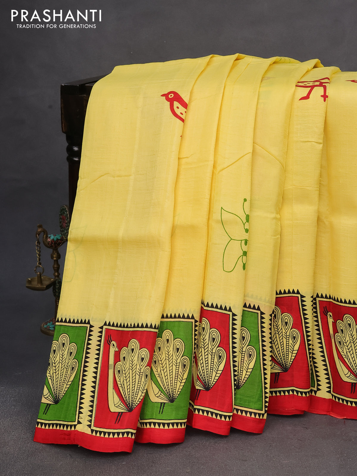 Bishnupuri silk saree yellow and green red with butta prints and printed border