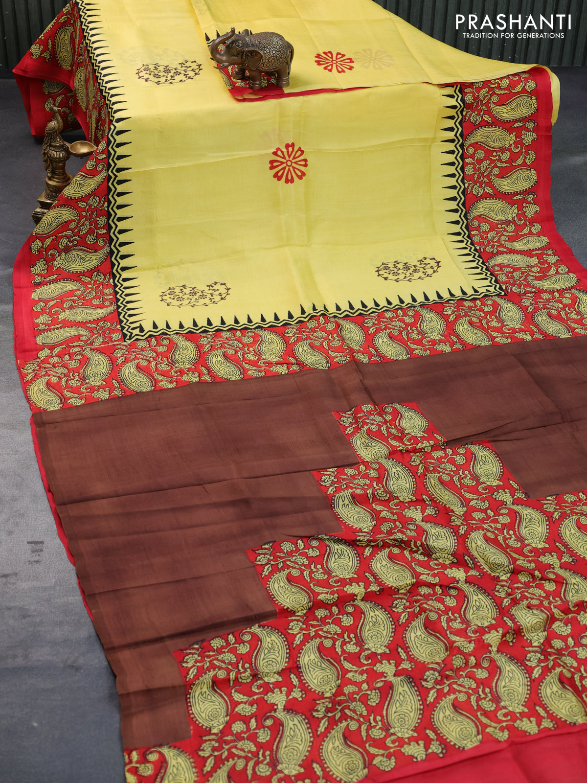 Bishnupuri silk saree yellow and red with butta prints and printed border
