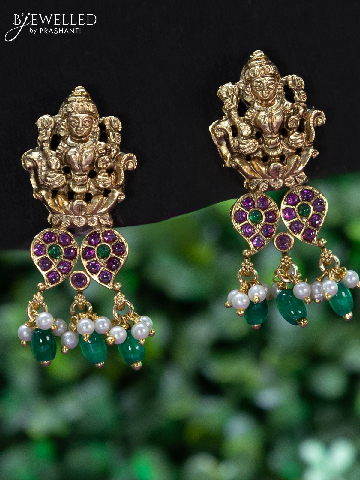 Black thread necklace kemp stones with lakshmi pendant and beads hangings