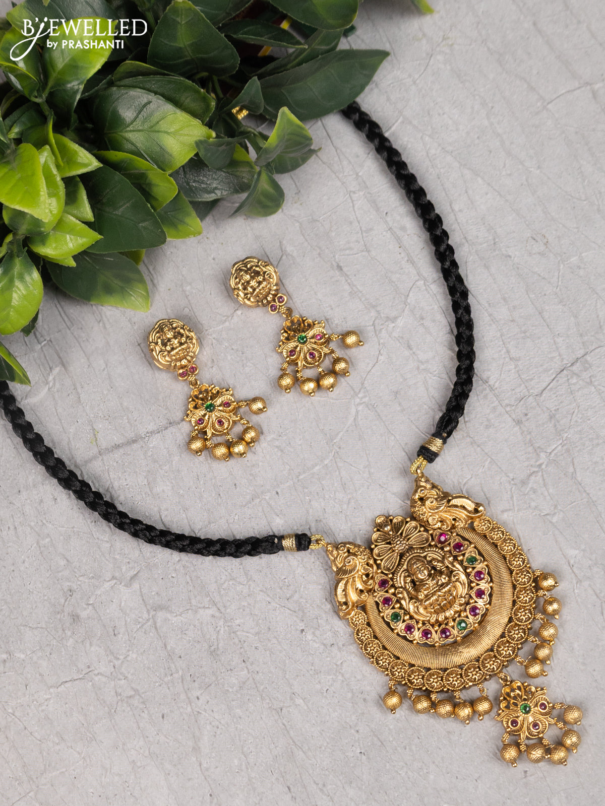 Black thread necklace lakshmi design with kemp and golden beads hanging